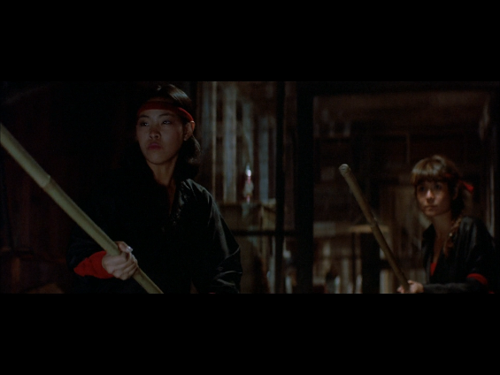 In that film... one by one, an apparently endless surge of over 100 Kunoichi squeal and drop before the brutal work of the heroines' unquenchable katanas
