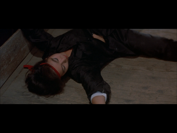 This movie ALMOST follows the old trope of letting the main baddie survive while killing off all the lesser zako. However, at the very end, the villainess tries to stop the heroes a final time and dies from a pistol shot. Of course, the villainess gets a somewhat extended, semi-tragic death scene, whereas all of her henchbabes are unceremoniously eliminated and promptly forgotten, in true zako fashion. >:O