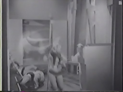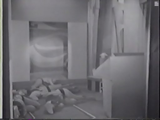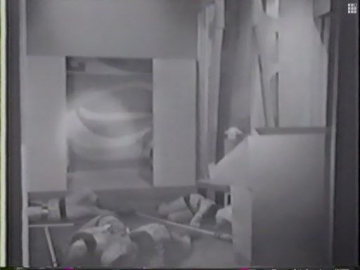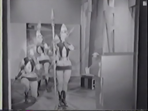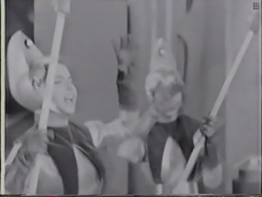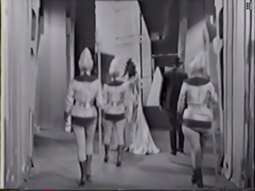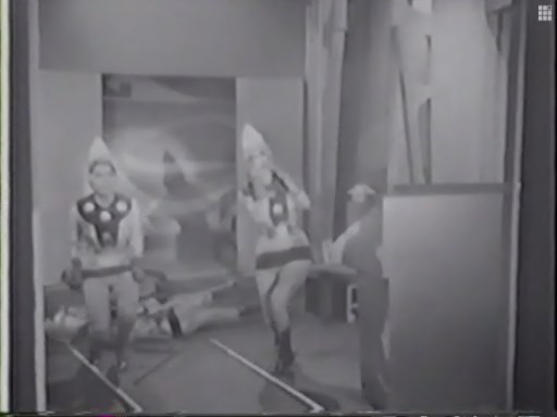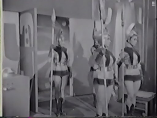 It's disappointing that this movie is in black-and-white, but I quite like the form-fitting leggings of the henchbabes' uniforms. Also, I love how Latin baddies seem to allow curvy, big-hipped henchbabes into their armies. Most of the time, they just walk around, guarding the heroes and stuff. However, when the heroes escape from their cell, they knock out two henchbabes by slamming them into eachother, and we watch as the good guys search the unconscious henchbabes, then leave the area, with the henchbabes still lying motionless on the floor. Later, the heroes manage to turn the baddie superweapon against them, and the henchbabes scream and fall to the floor pitifully as it hits them. (Unfortunately the weapon makes their bodies disappear soon after they fall, so we don't get to see much of a body pile).