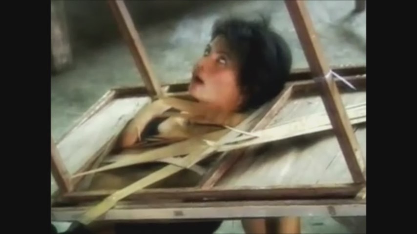 I think credit for this goes, again, to MovieMayhem from Evilbabes, for bringing my attention to this movie. In this movie, a bunch of female prisoners must escape from the prison and the evil guards, many of whom are females wearing uniforms of black tanktops and short shorts. First, one of the female guards has her neck snapped, then another one is shot. The third guard suffers the most and has the most "ryona" style defeat, getting hit in the stomach, then clubbed over the head a few times until she is stunned and defenseless, and finally having a table literally broken over her head, presumably killing her. Unfortunately, this guard with the longest and most interesting scene is also, in my opinion, the least attractive of the guards. :-/