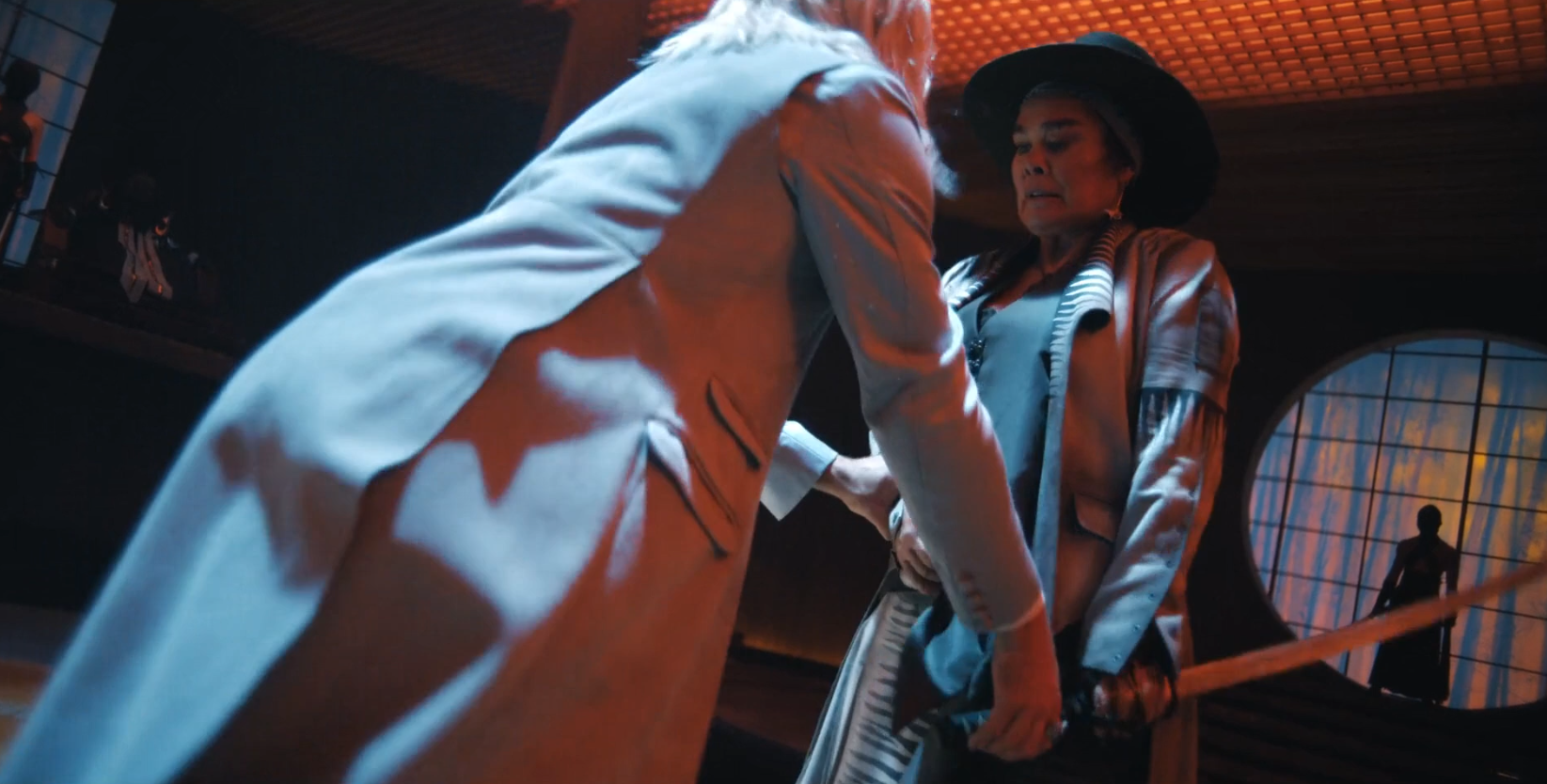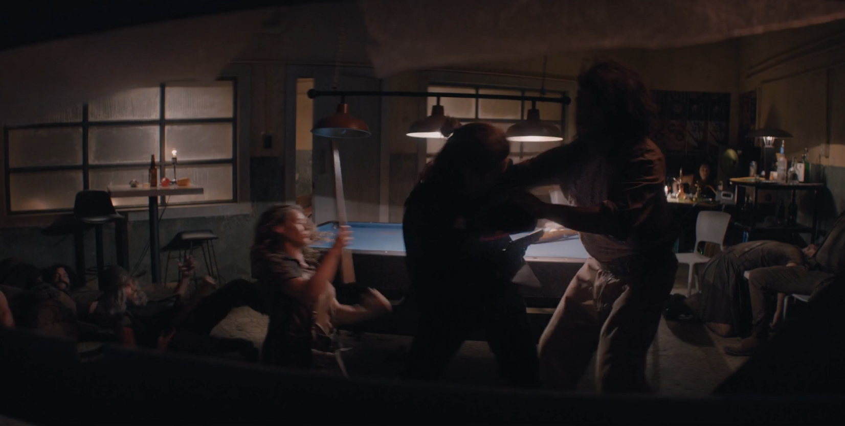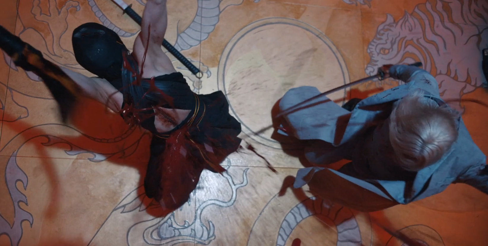 In the middle of the episode will be a fight with melee weapons. One female boss will be wounded and killed much later, partially off-screen. It will happen when this scene will over and after some time the battlefield will be shown again.