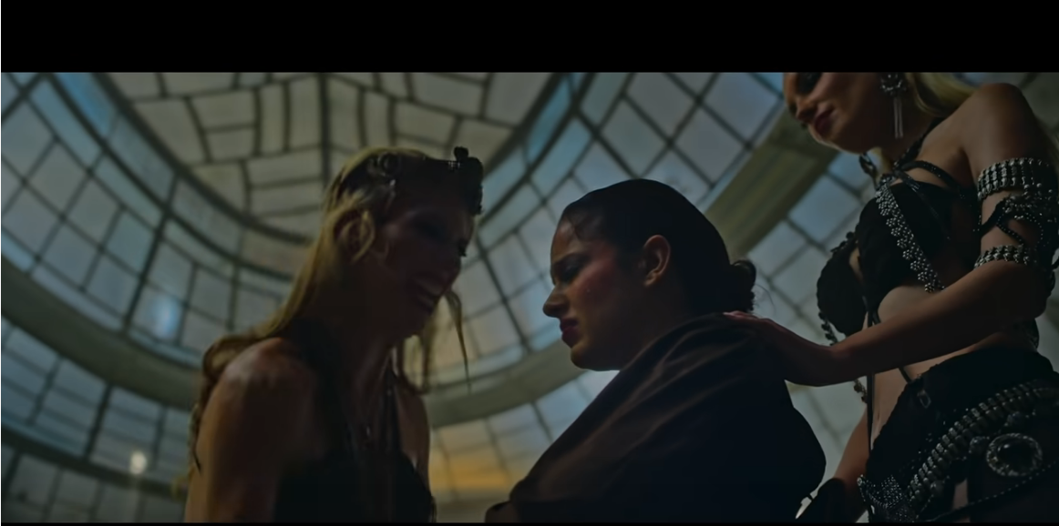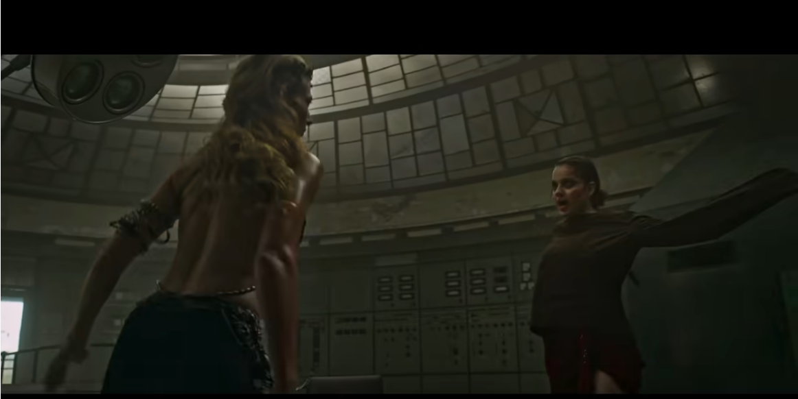 From Dhaakad 2022. Hindi Movie. Two sexy henchwomen are overpowered by the tied up heroine