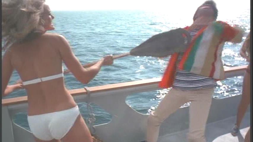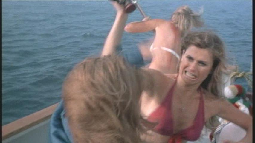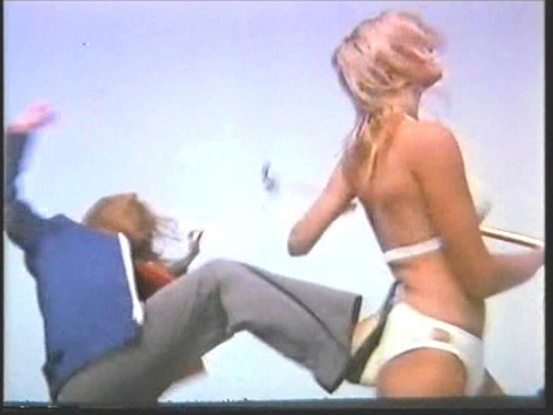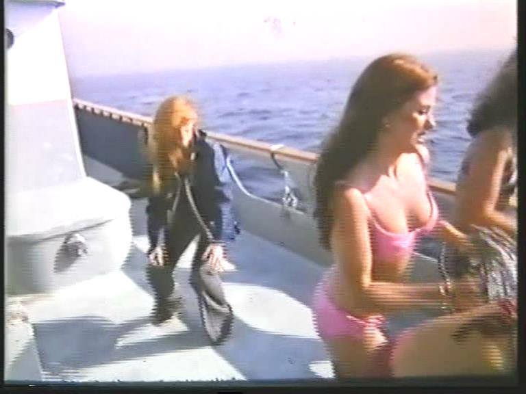 The best zako action is the boat chase sequence. One of the 5 henchwomen ( a rather overweight one, and the least attractive IMHO) has been disposed of by the hero before the heroine arrives on the scene. The hero has been badly injured by the henchwomen's murderous assault. So the heroine tackles 4 armed bad girls in single combat. The scene has the rare added attraction of the bad girls mainly being in bikinis!