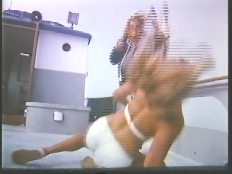 There's no entirely satisfactory single source for this movie and this particular sequence suffers badly in the various copies around. The recent letterbox type dvds are very good resolution, but cut away parts of the picture frame; the old video and tv sources can be of poor quality and snip out important action/censor the language (the blonde bad girl's sweary F words are lost). The UK video messes with the fight - it absurdly removes the heroine taking out the second bad girl entirely for some reason, and the heroines great ax kick chopping down of the last bad girl is cut out. So a number of these sources have been edited together, restoring fuller frames / the cut bits etc, so it's as complete as possible - but at some cost to consistency.