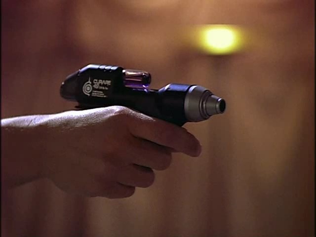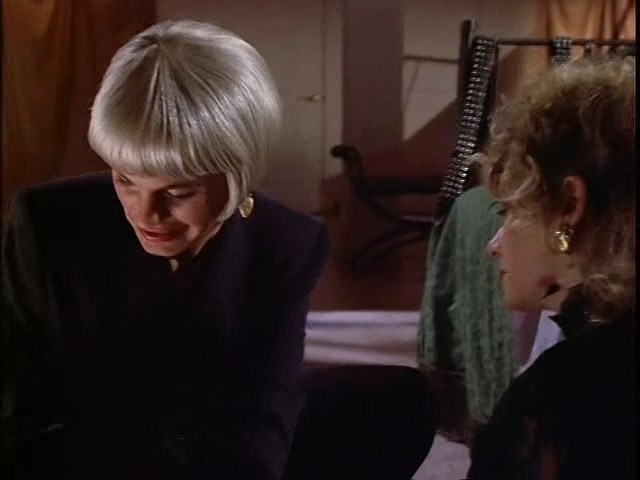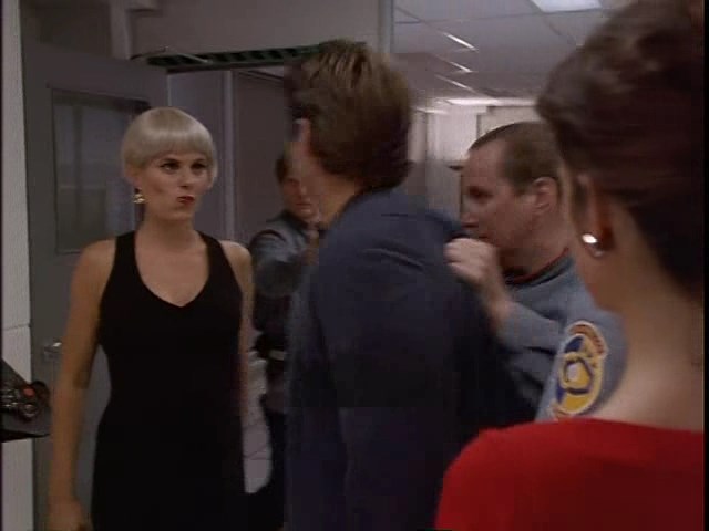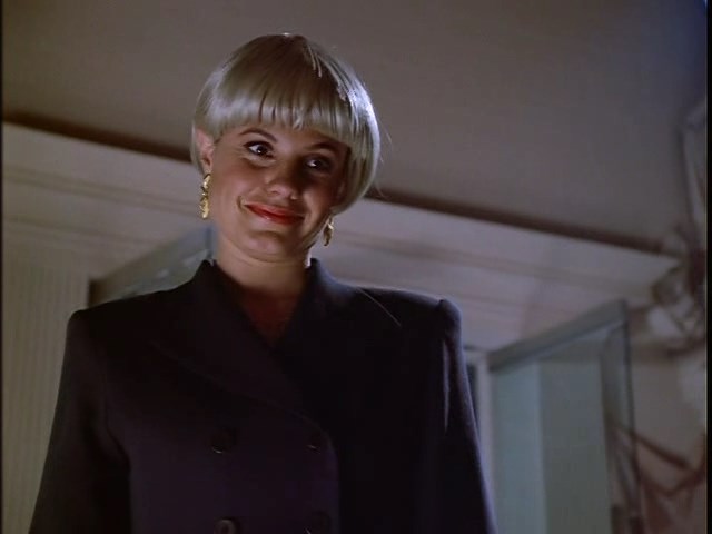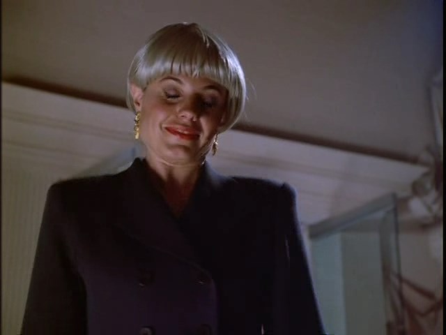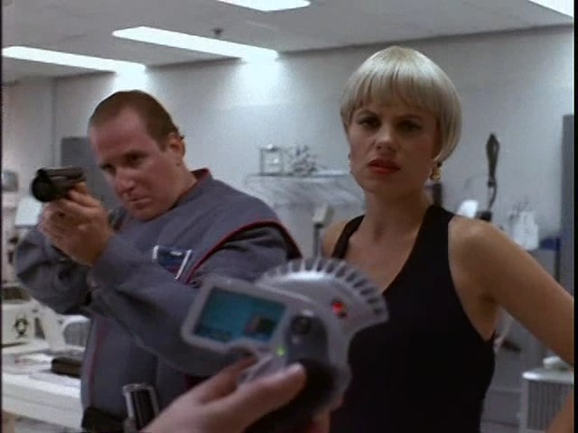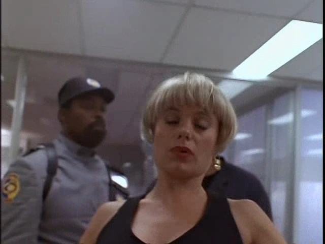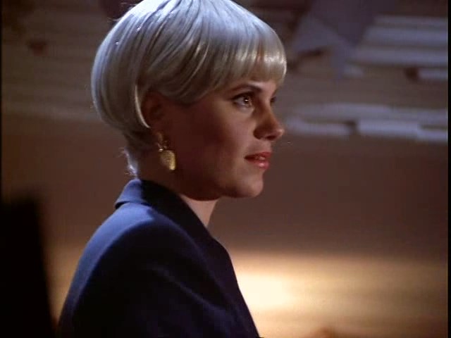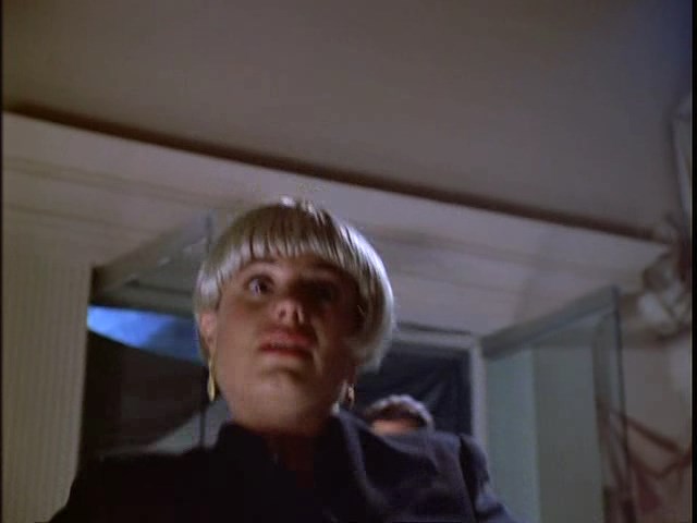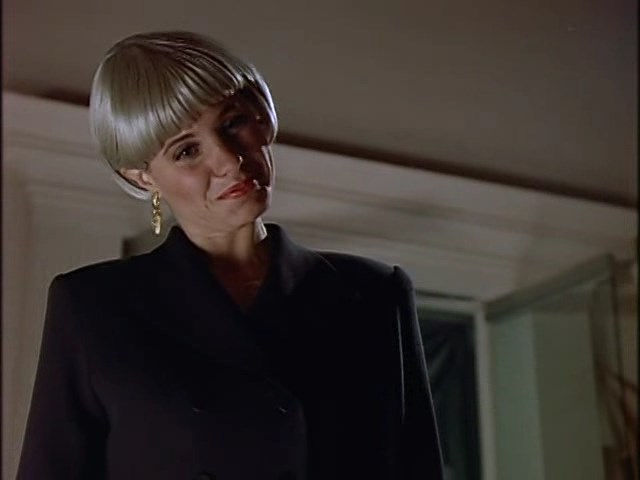 Sexy blonde assassin lady from TekWar, S2E01. She killed a sellout of the company (off-screen) and then eliminates the prostitute he was selling information to by first shooting her with a tranq dart, then putting a Tek device (sort of a virtual reality combined with chemicals drug) on her and setting it so she overdoses. During this, the whore visually sees the assassin girl getting shot in the back - but that does not happen in real life.