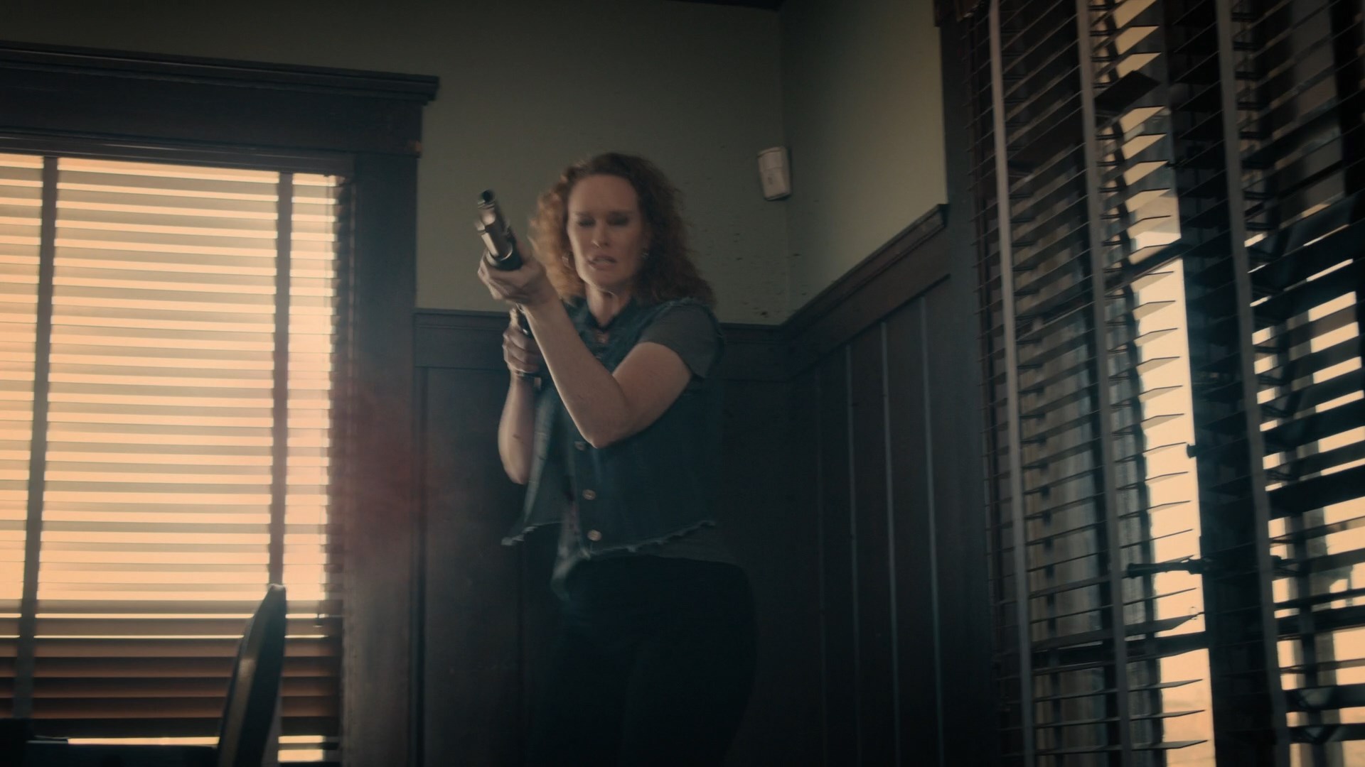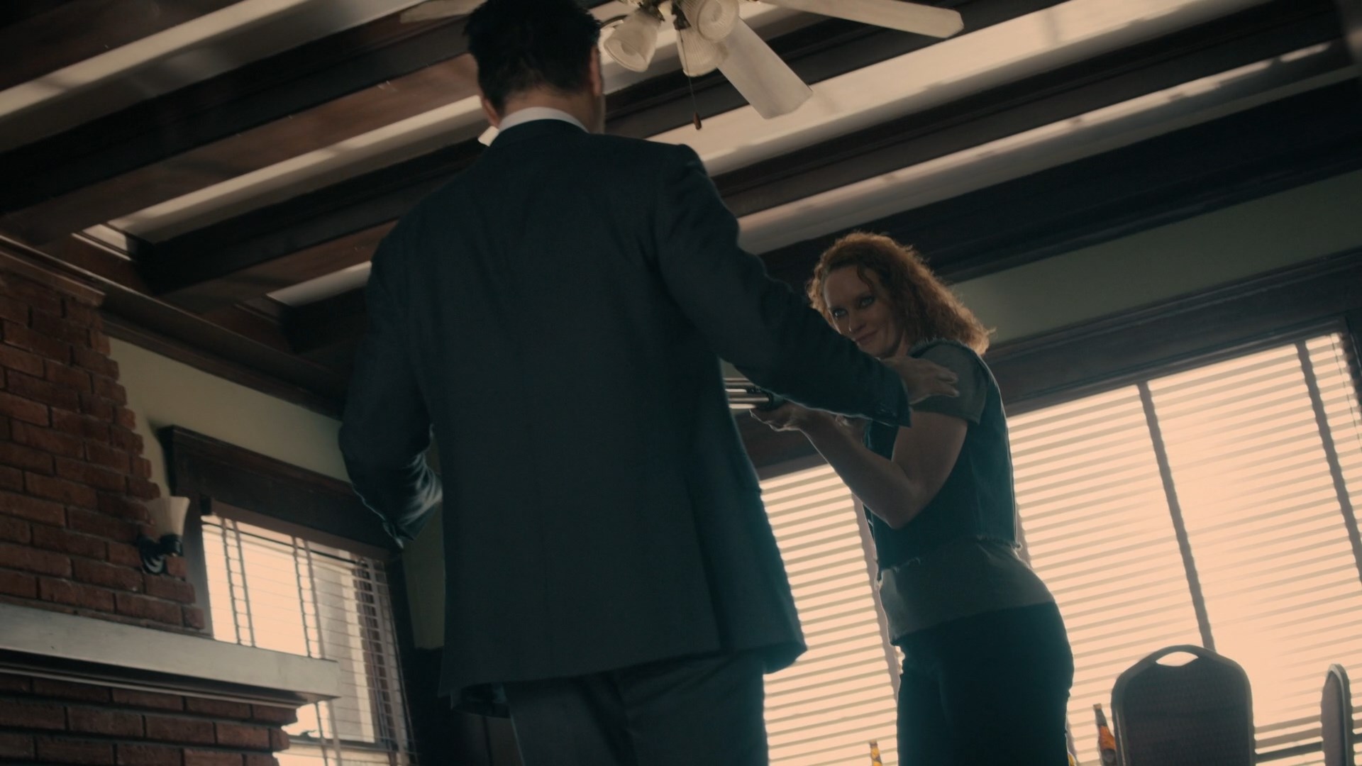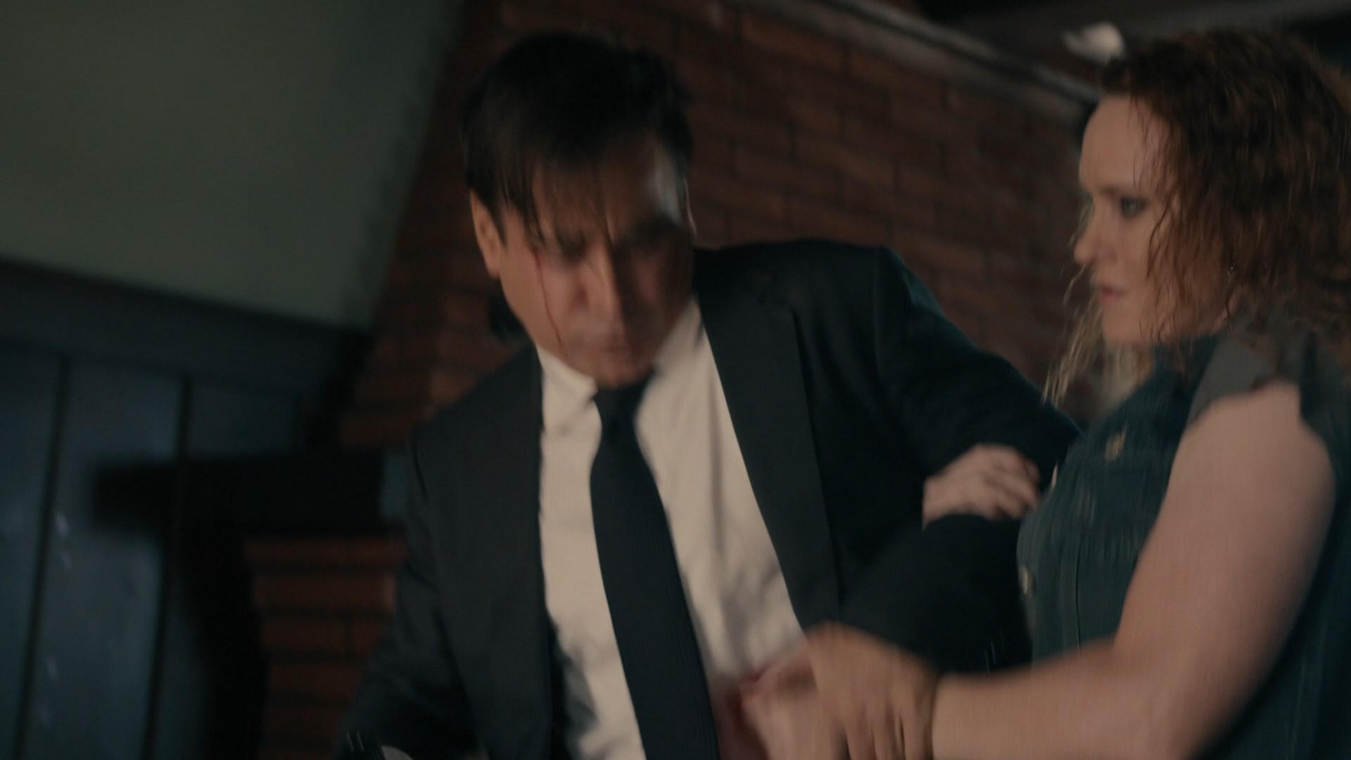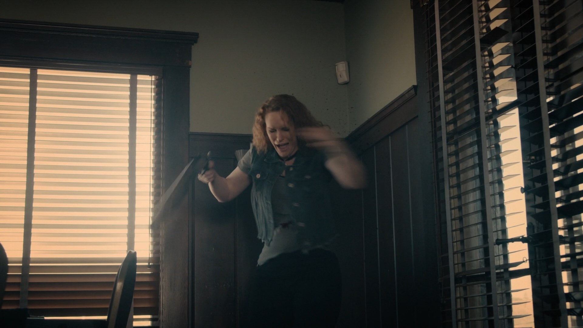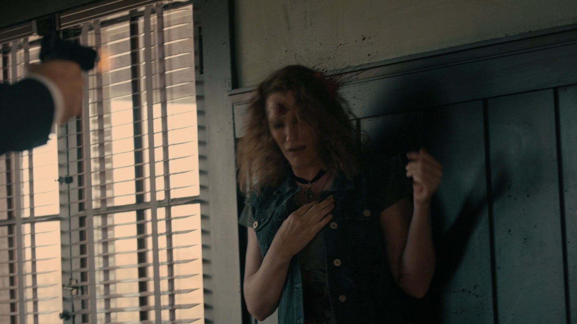 I did like that unlike the classic cliche where the baddie dies immediately after being shot in the back, she was convulsing on the floor and talking smack to her killer before she expired.