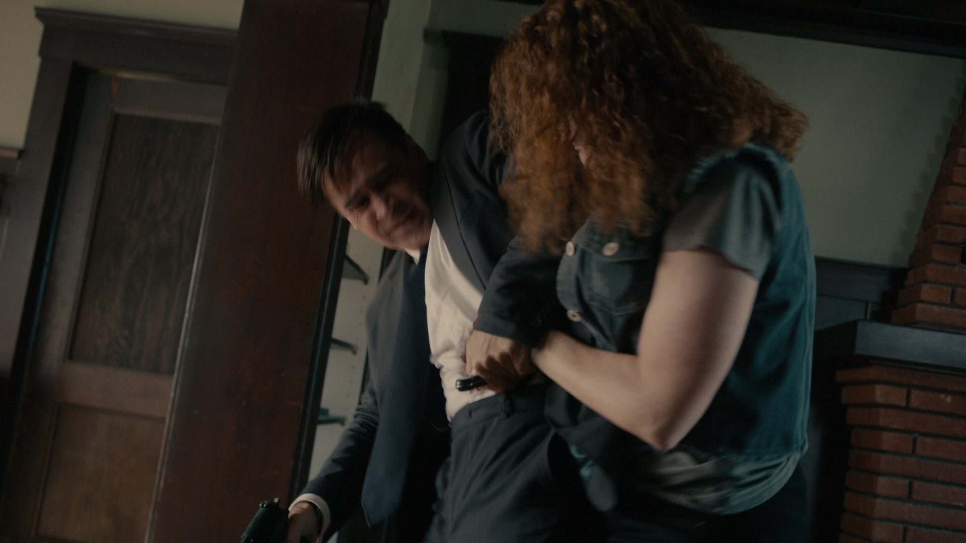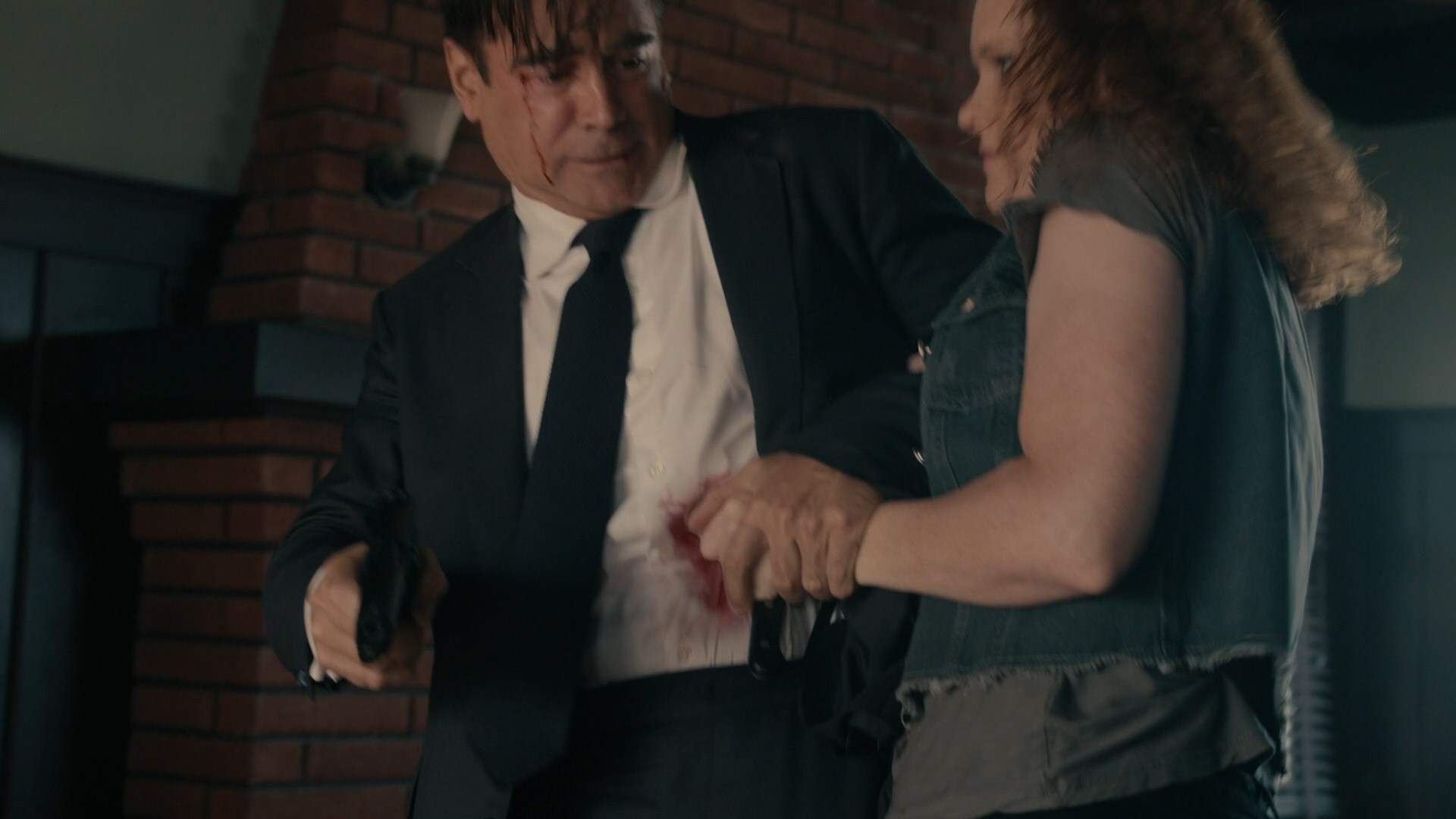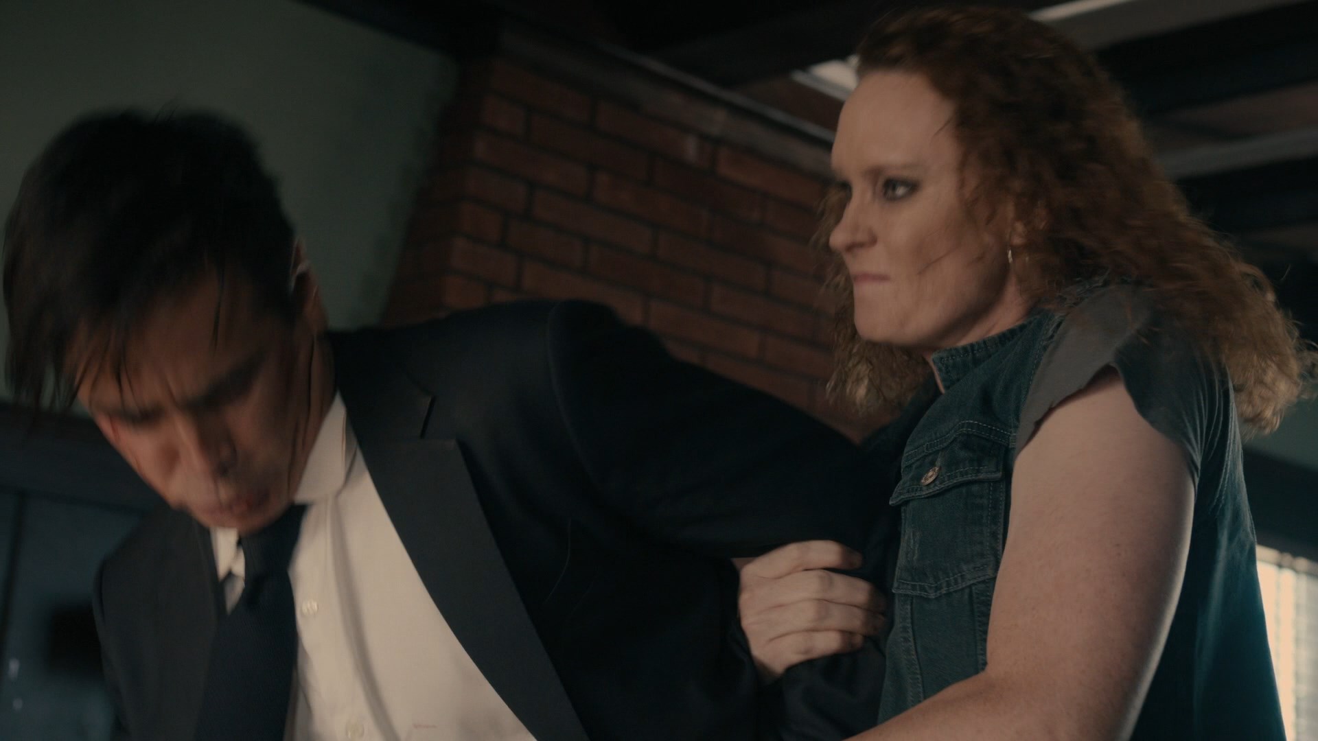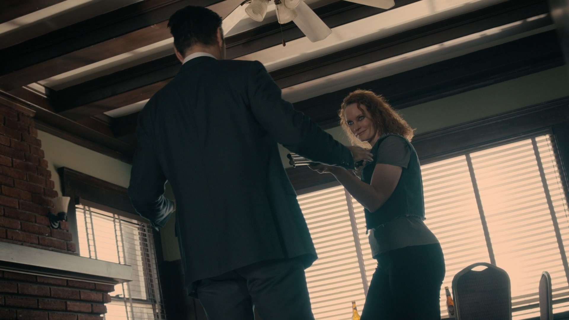 I did like that unlike the classic cliche where the baddie dies immediately after being shot in the back, she was convulsing on the floor and talking smack to her killer before she expired.