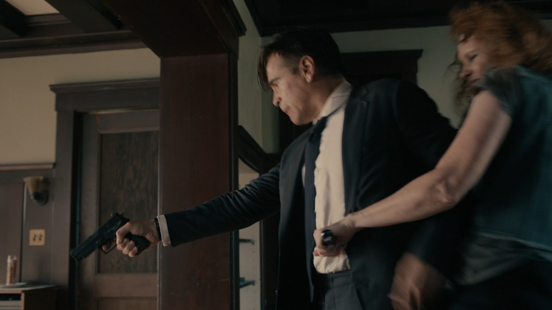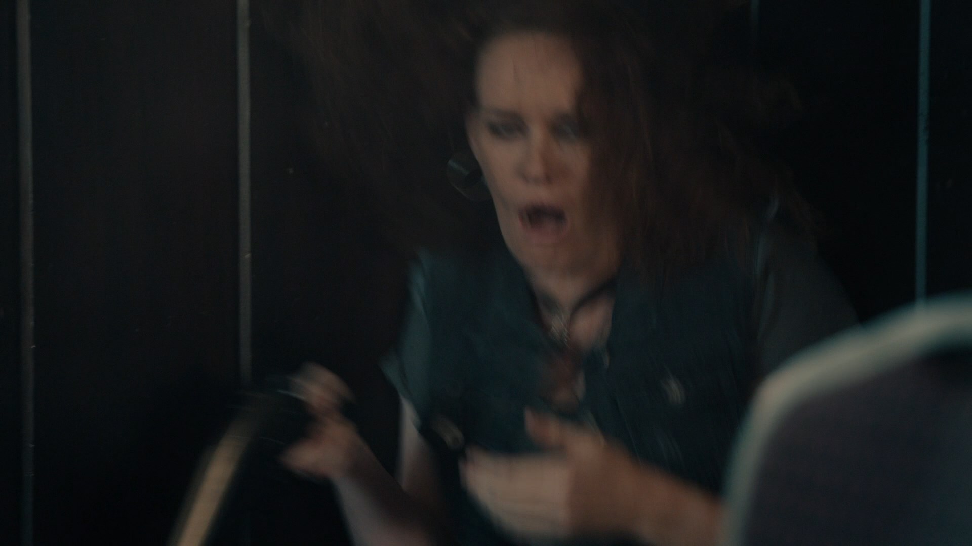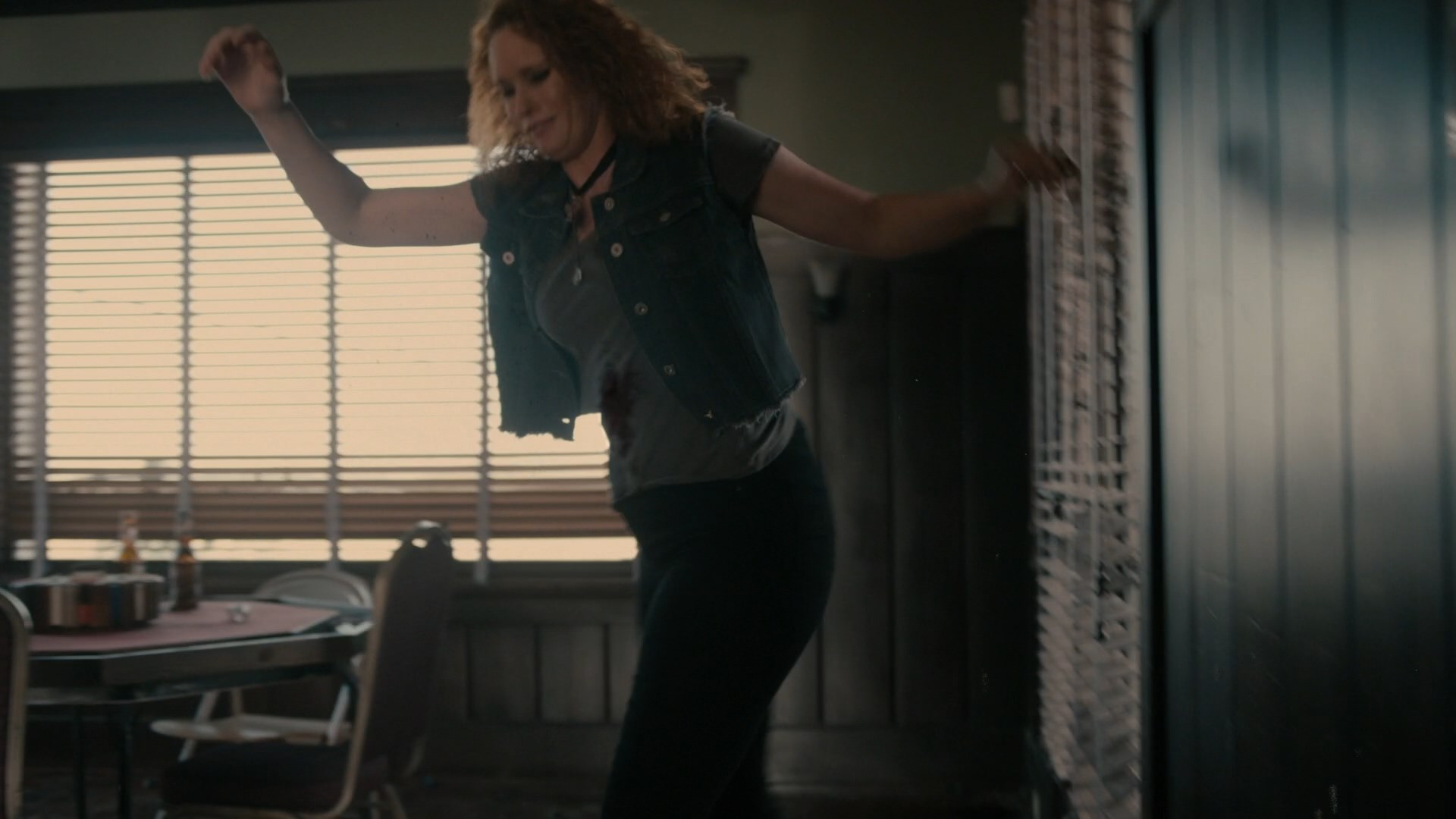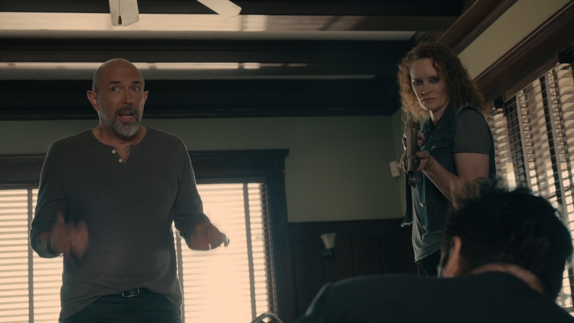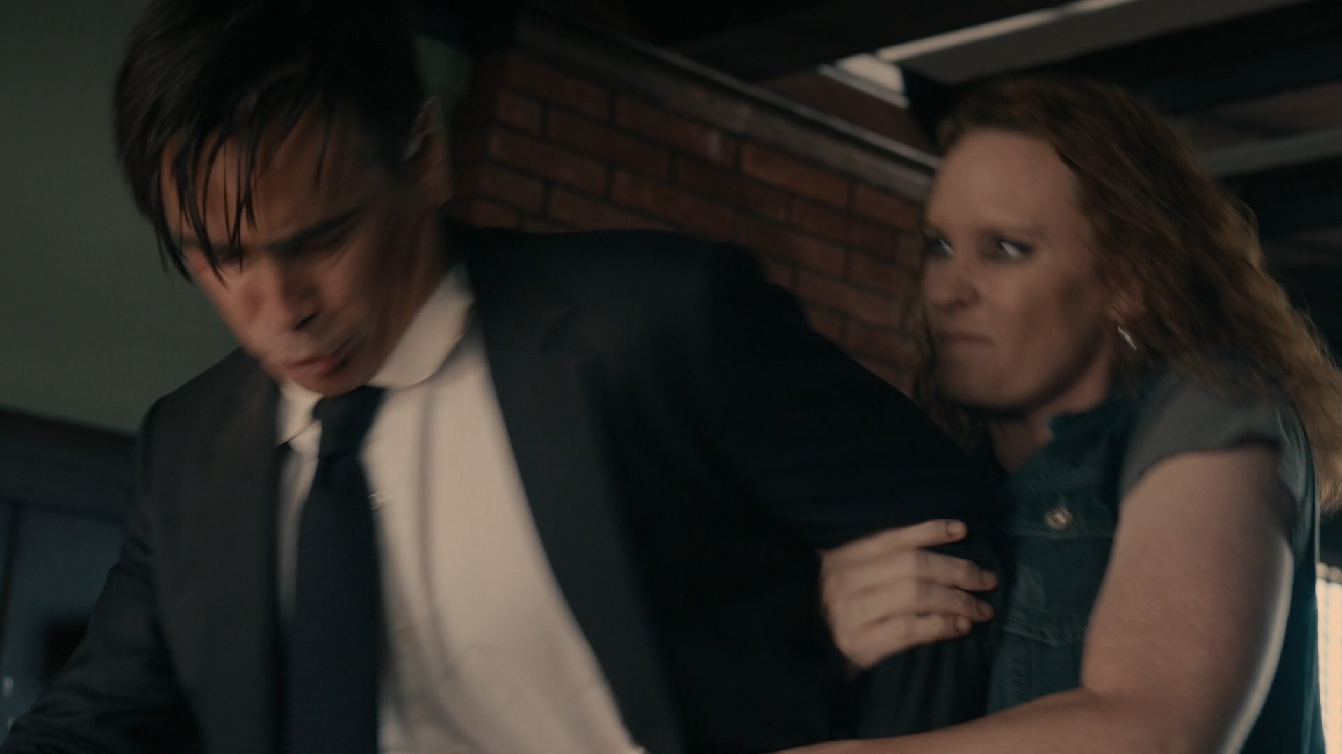 I did like that unlike the classic cliche where the baddie dies immediately after being shot in the back, she was convulsing on the floor and talking smack to her killer before she expired.