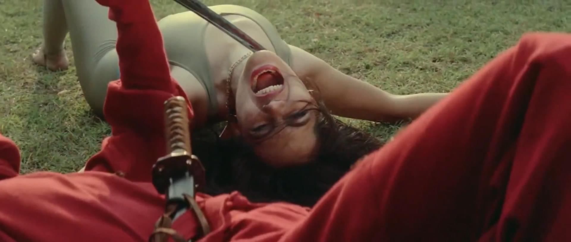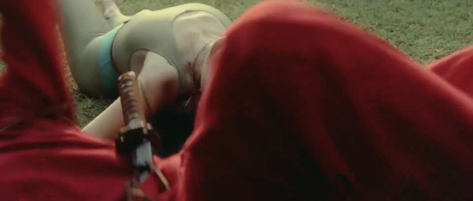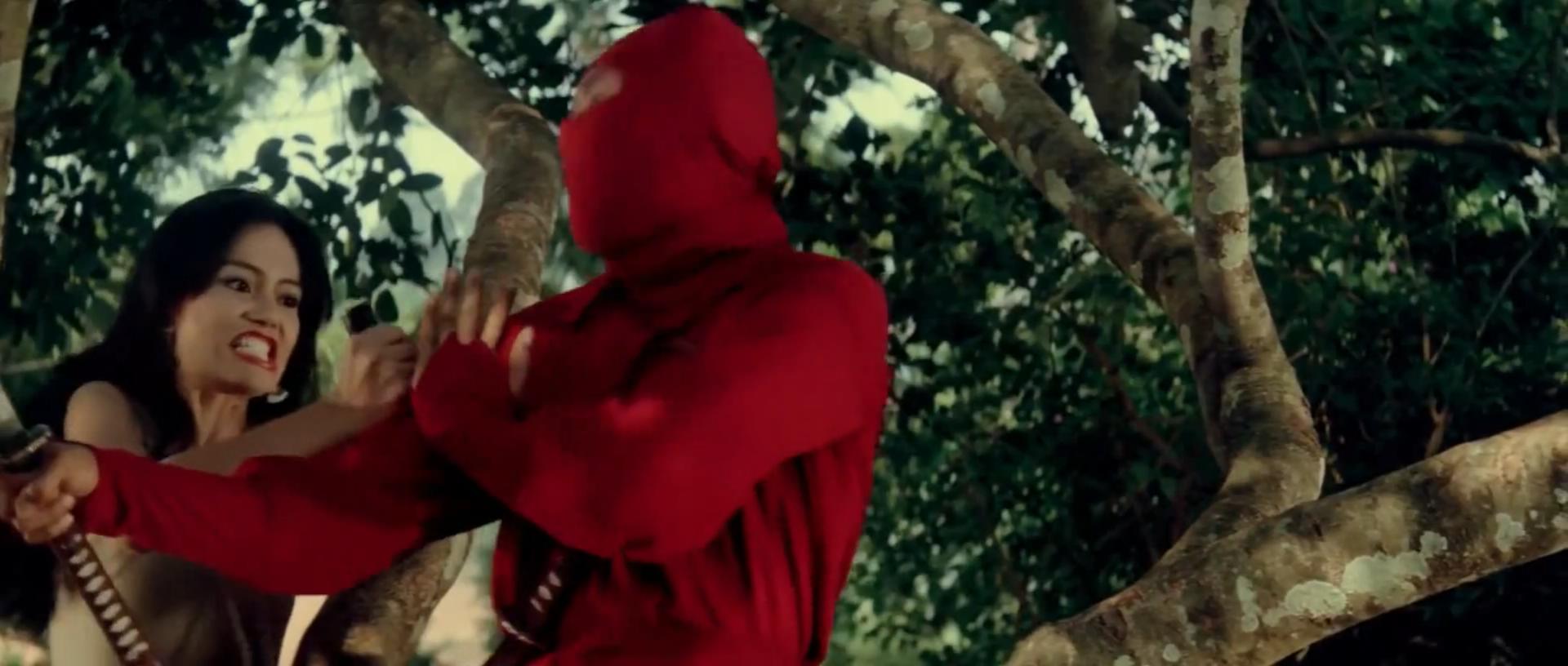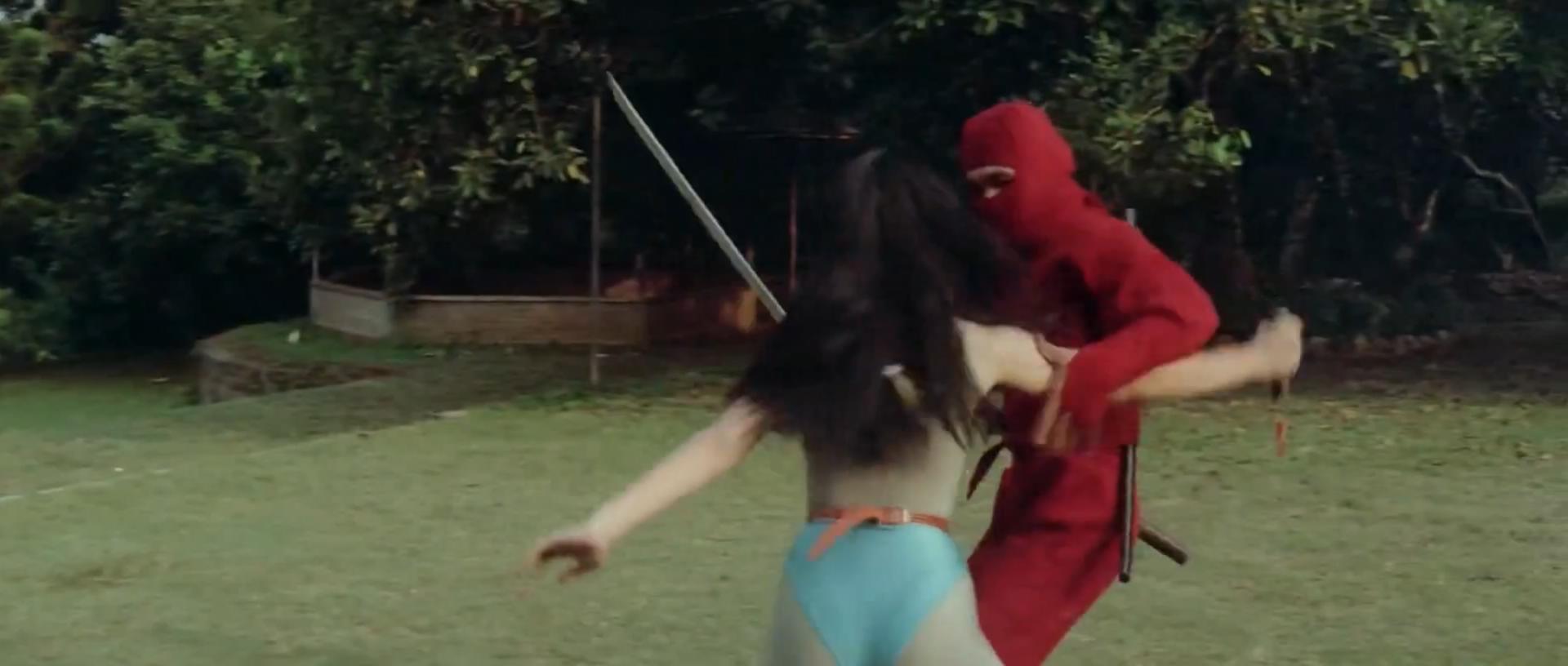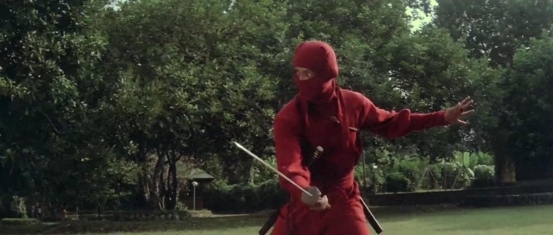 In this one, the outfits are pretty bad too. Just full body red leotards with those ridiculous Elvis-style long straps on the arms of the clothing, white boots and black masks. Not super sexy nor revealing.