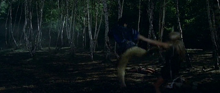 As the Zako are going down, Buck takes the blonde’s gun and leaves the daughter to finish them off. By now other Zako guards are coming to fight and Buck shoots past the first one causing some explosions of the machines behind her. For some reason, the girl falls to the floor apparently unconscious. Another guard appears and suffers the same fate as Buck also shoots past her and she too falls to the floor out cold.