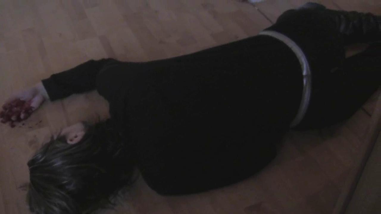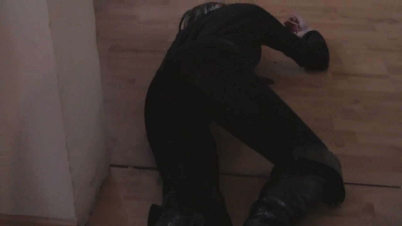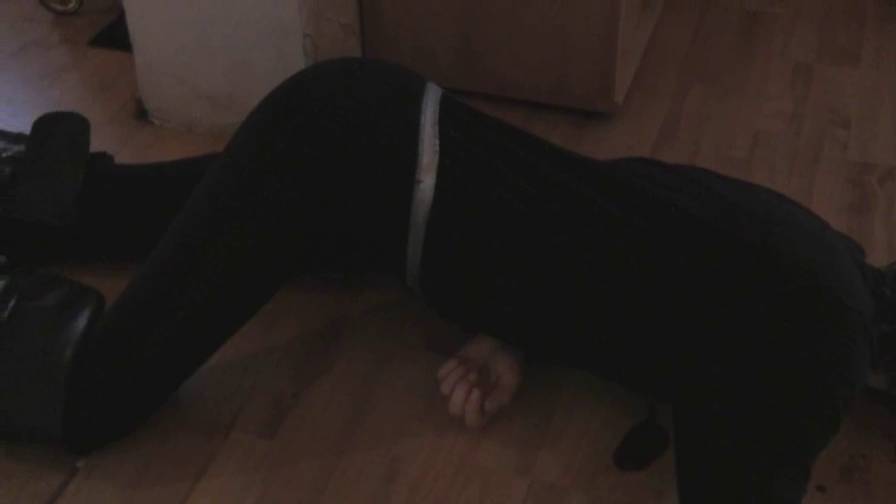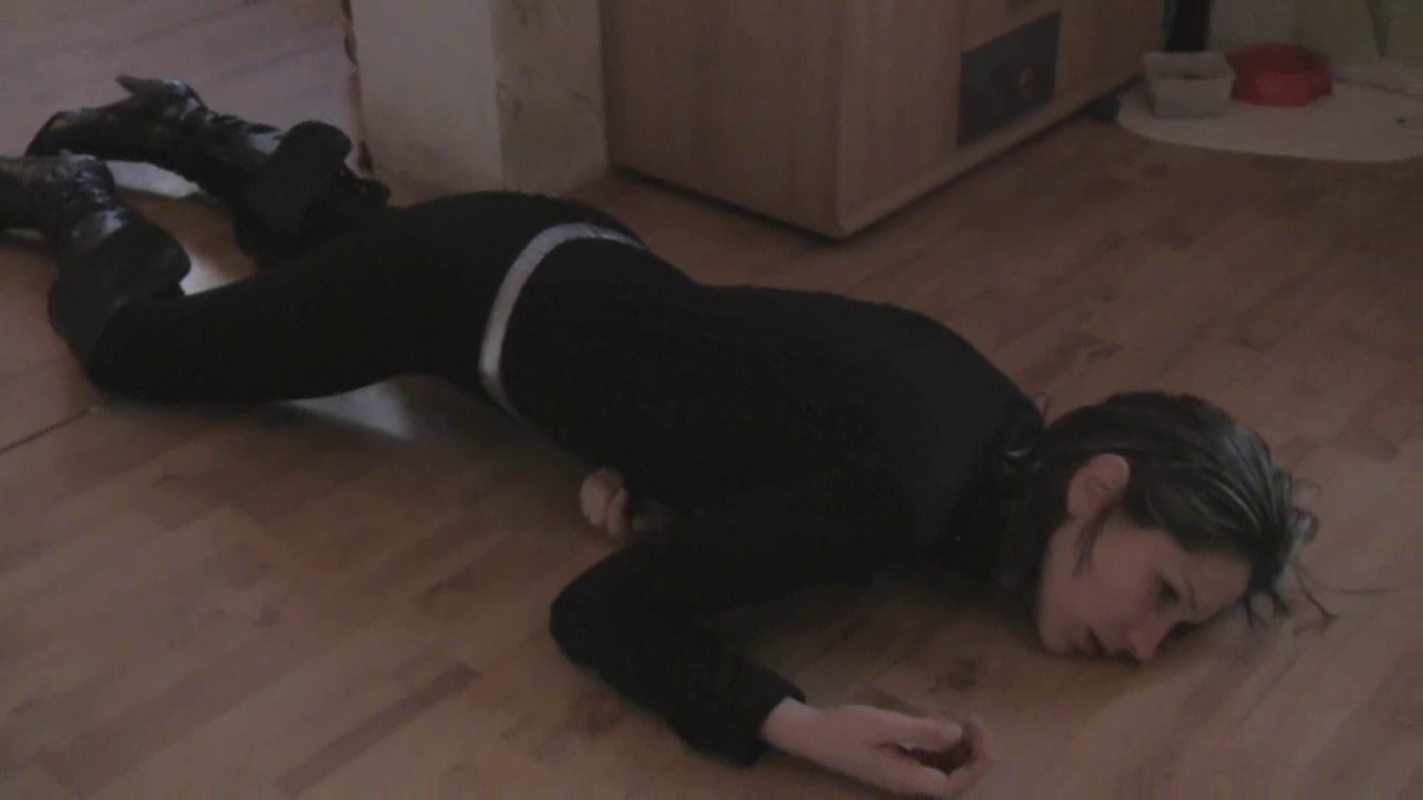 The spy continues searching the dead zako for the key to the next room. He rolls her over and starts stripping her, first her boots, then her turtleneck. Right as he's about to take her leggings off, he finds the key hidden in the top of her leggings. He leaves her there and advances to the next room.