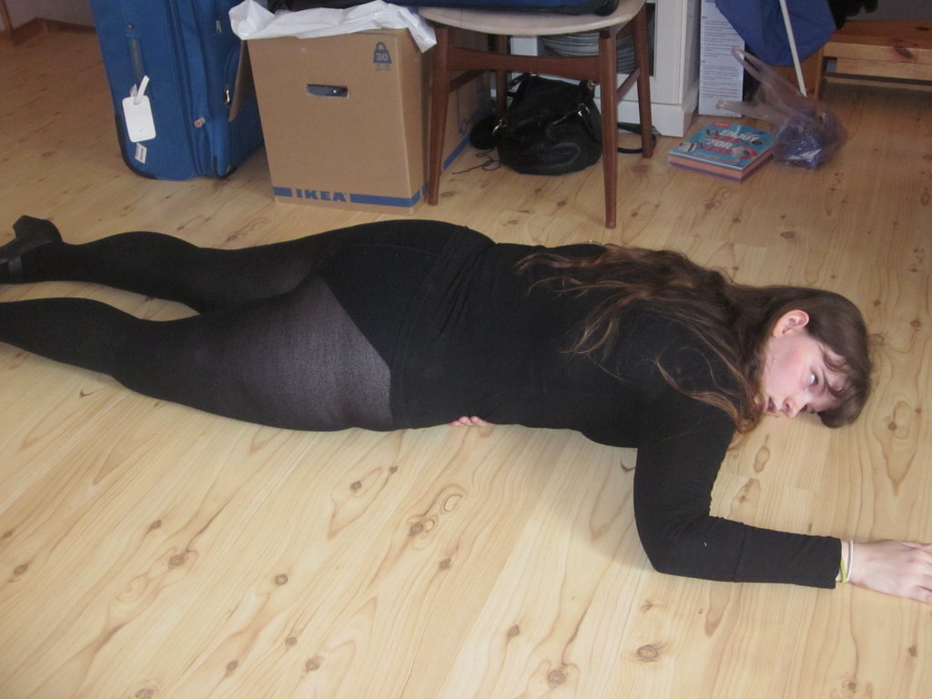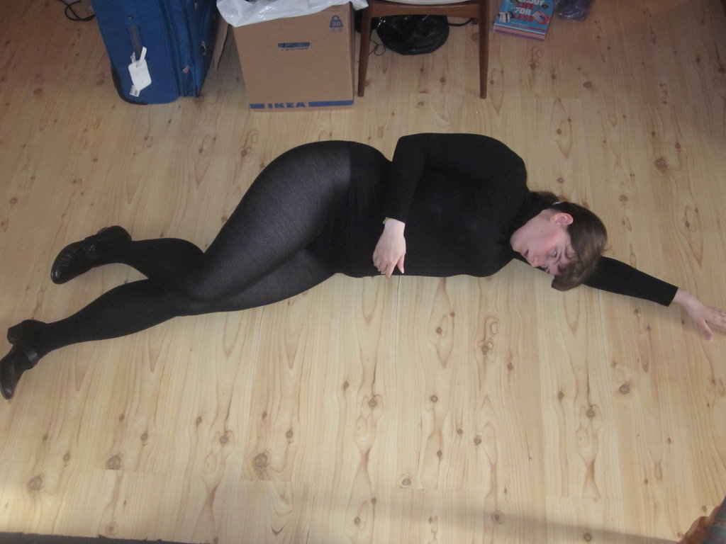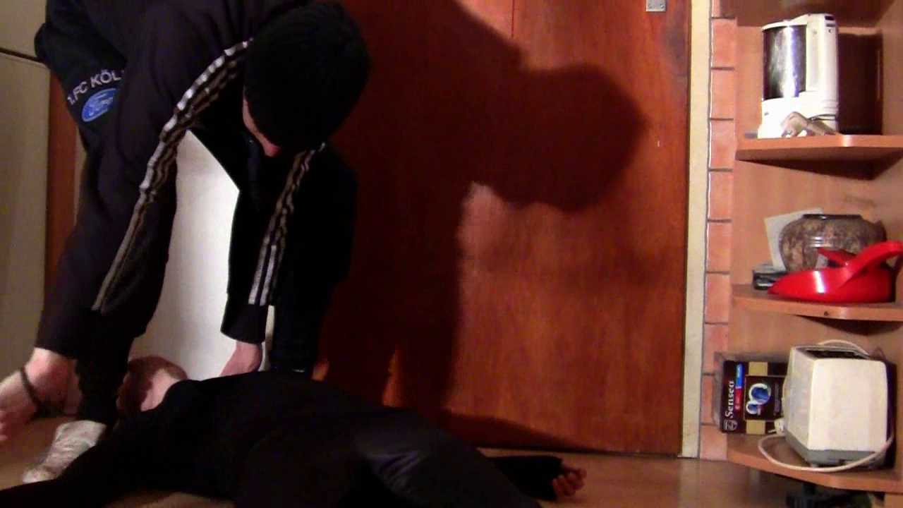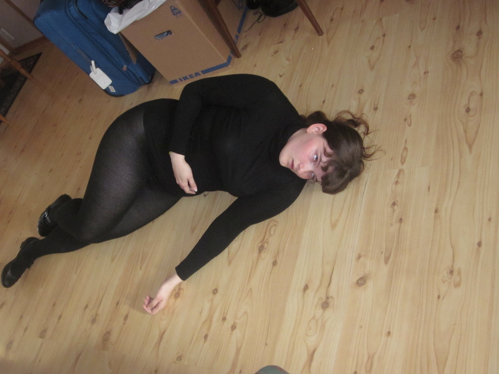 The spy continues searching the dead zako for the key to the next room. He rolls her over and starts stripping her, first her boots, then her turtleneck. Right as he's about to take her leggings off, he finds the key hidden in the top of her leggings. He leaves her there and advances to the next room.
