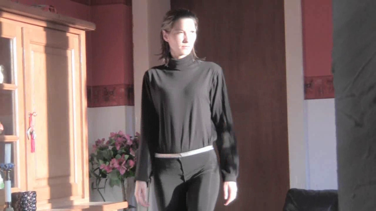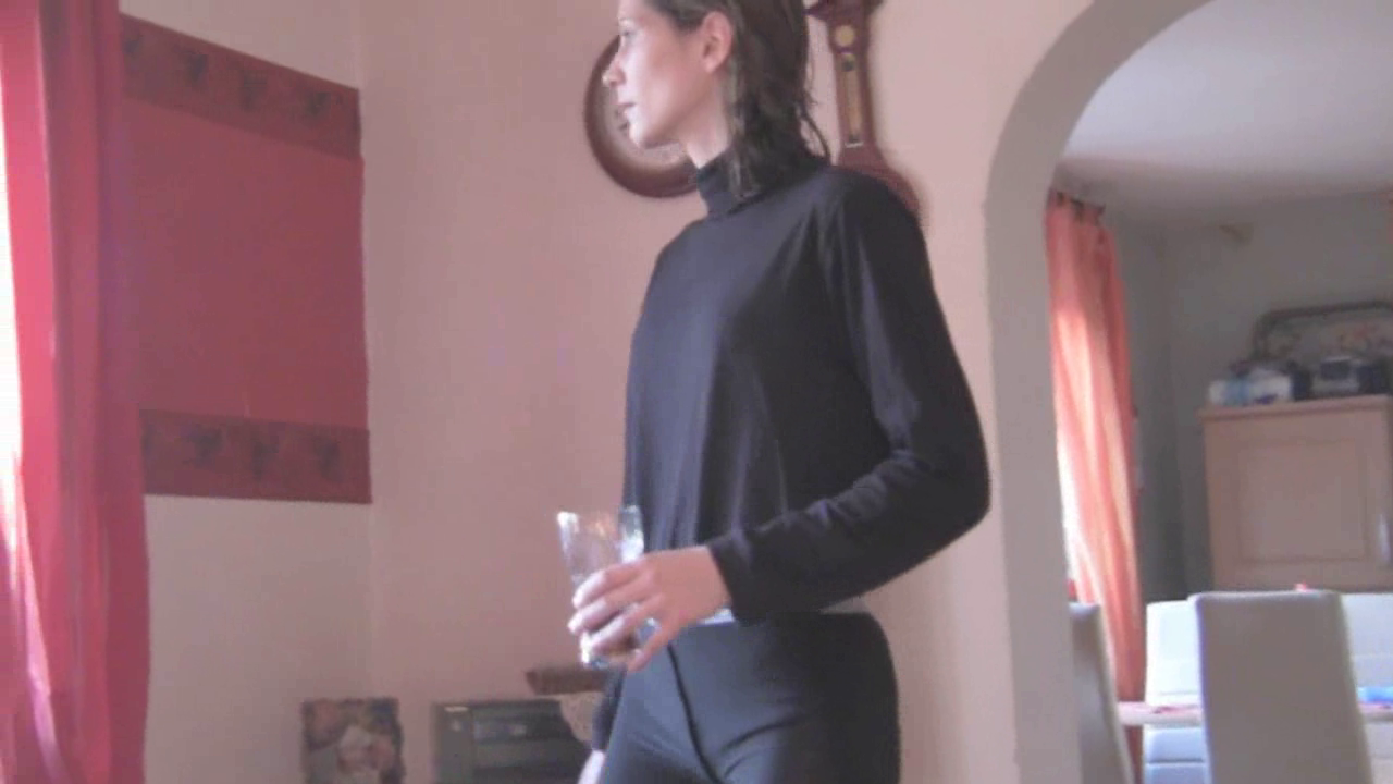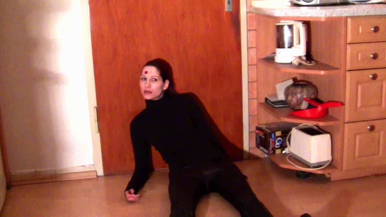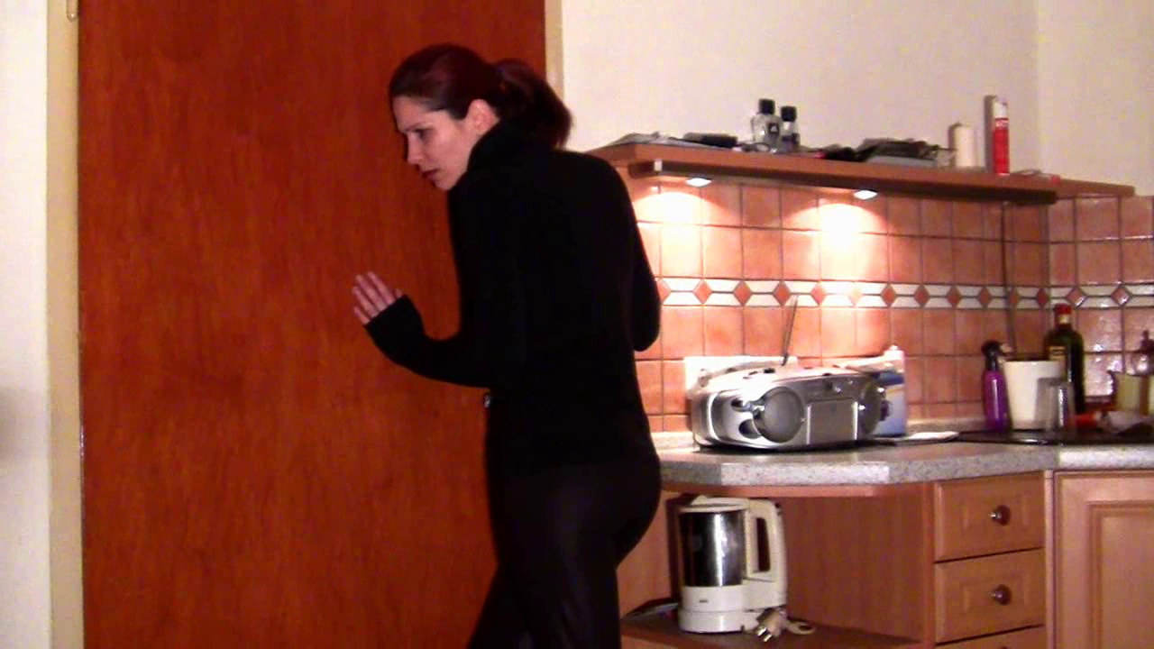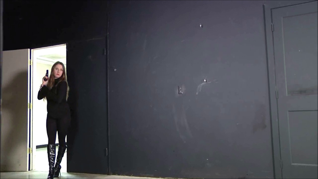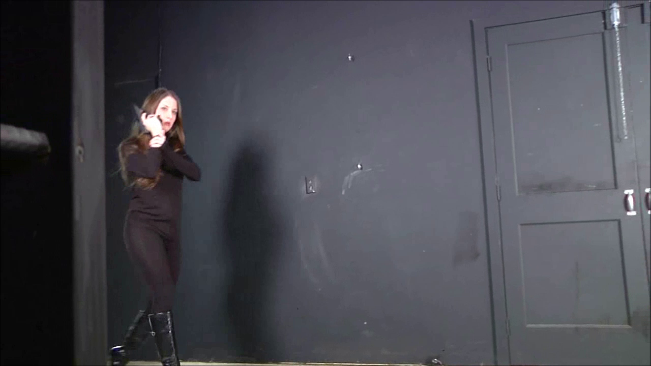 a heroine is trying to find her friend and is ambushed by three gun-wielding, leotard-and-tight clad babes with funny silver fin headbands on. They work for the main villainess (not appearing in either clip). A spirited confrontation leads to a beatdown.