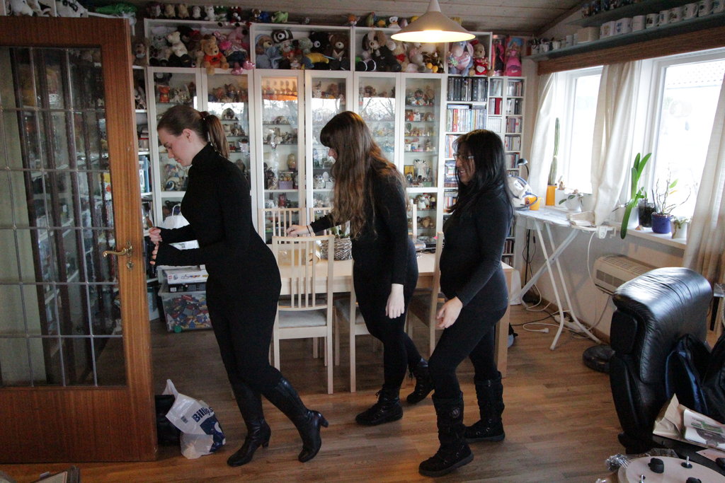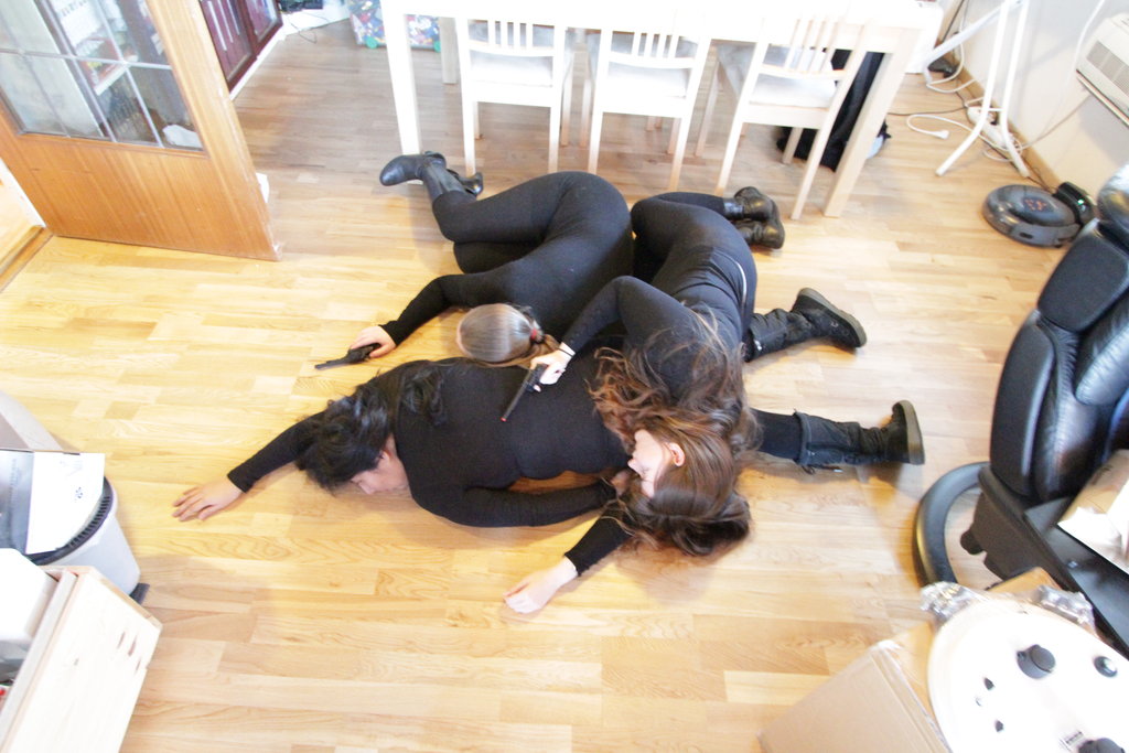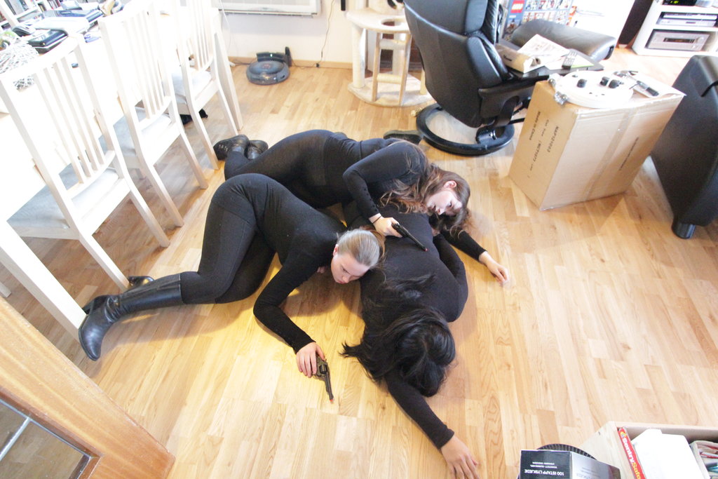 I don't have a name for them yet (suggestions would be nice). I created their uniform based 60s/70s spy and action movies with zako in them, like the henchwomen from Operation White Shark; combined with my love for girls in black cotton leggings, and face down kill or KO.