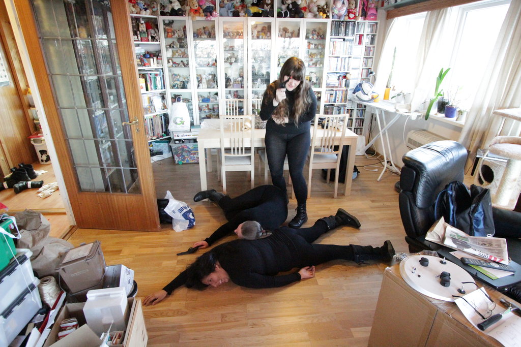 The first zako is waiting for the spy to come home, so her and the other one can kill him. But she waits in his living room. She soon hears a noise, she goes to check on it, but it's the spy who knew she was there the whole time.