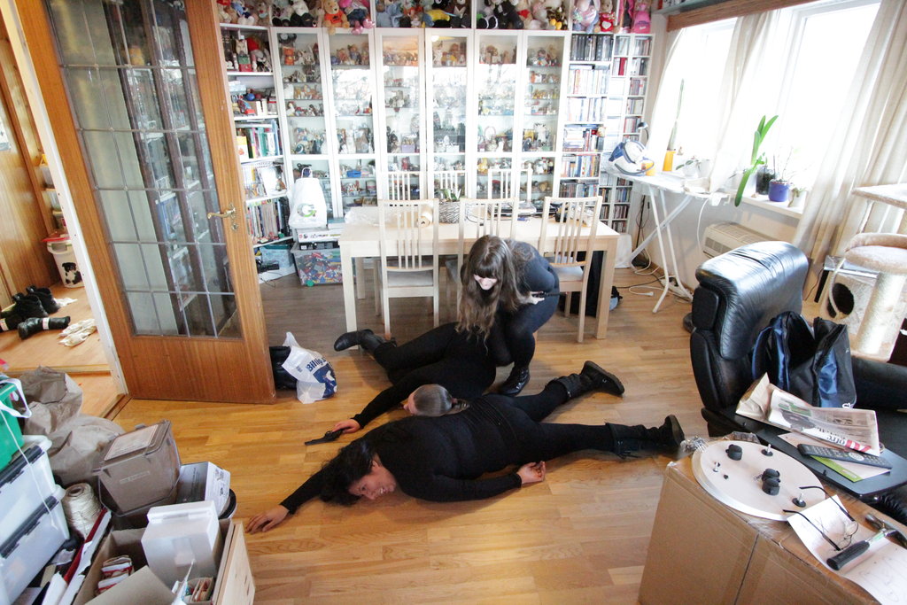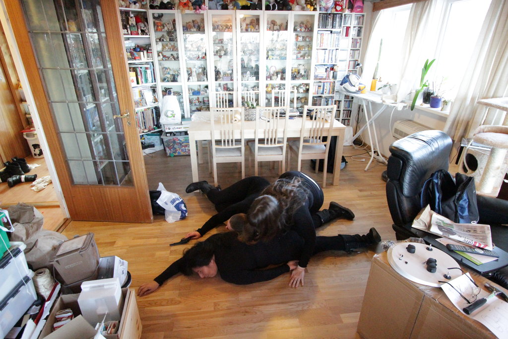 Meanwhile, the other zako is in another part of the apartment, she has the spy's laptop, and tries to find any info the spy has on the evil organization the zakos work for.