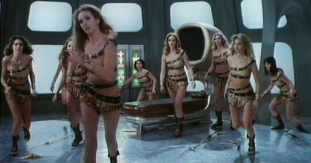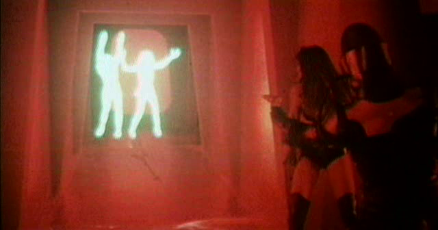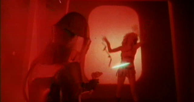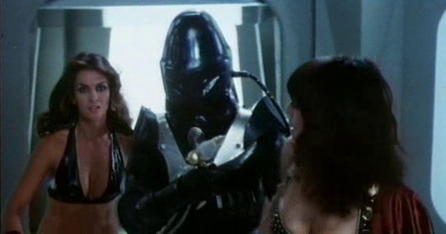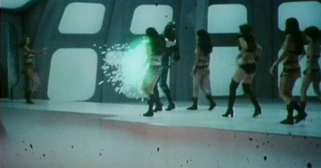 The human/robot guy returns to save his female friend, and takes the evil Amazon leader as hostage so they can escape. The Zako Amazons chase after them, but the robot guy zaps a few of the ones that are able to follow them. Unfortunately, that's the last we see of any of the Zako or their leader in this movie.