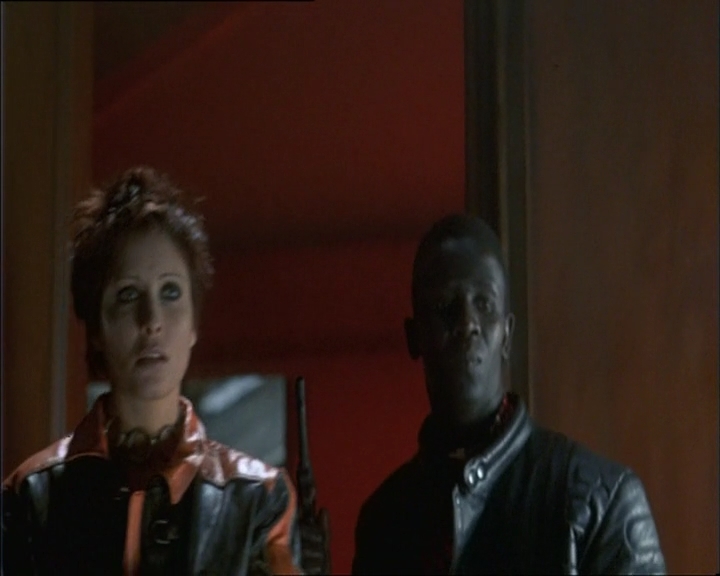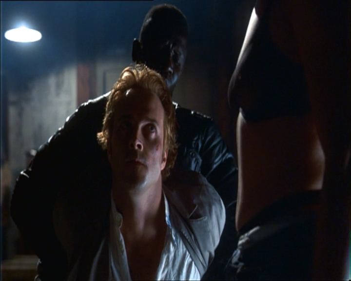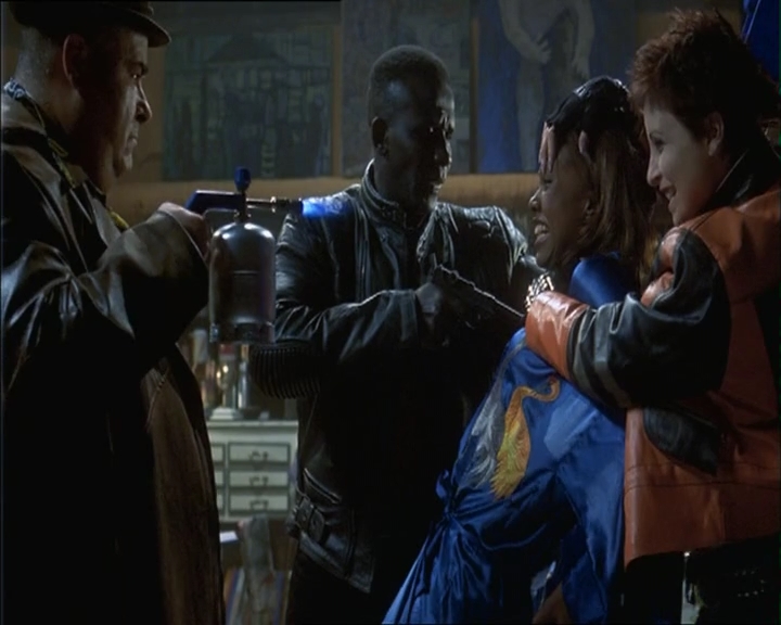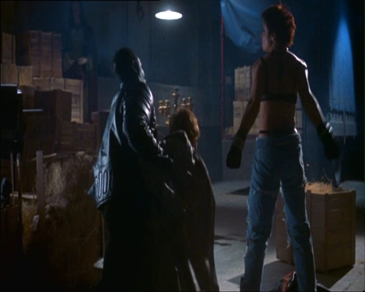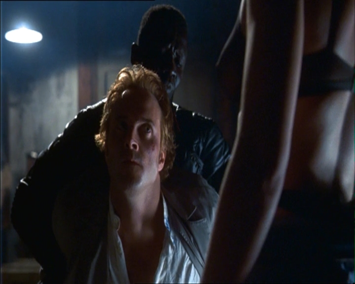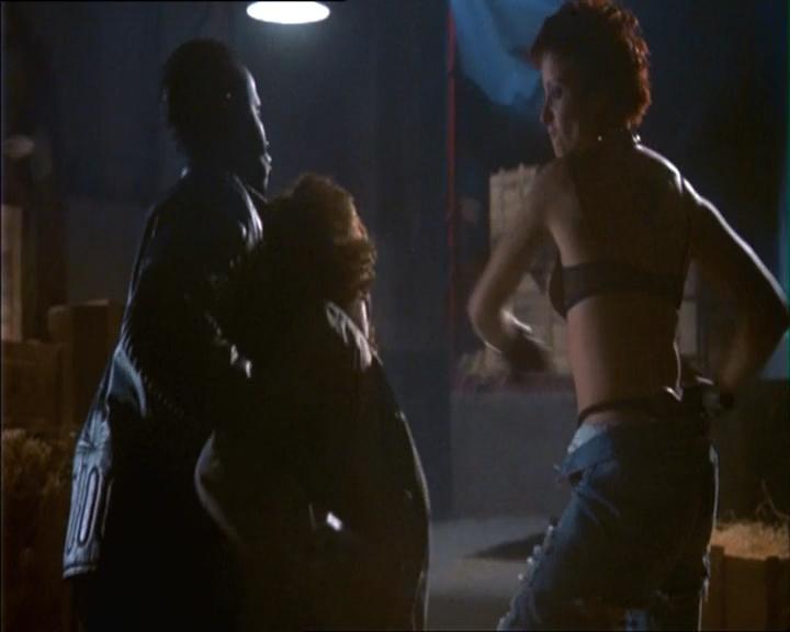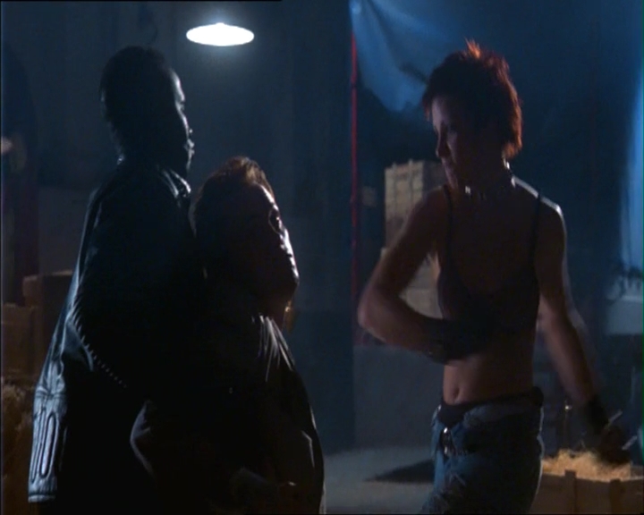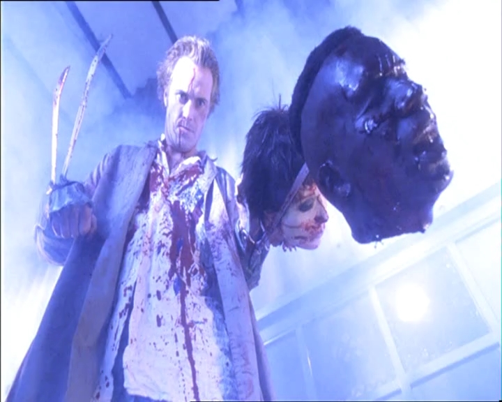 When pseudo-Devilman returns for revenge, the black guy holds him down while the bad girl beats him up with punches... until he gets loose and stabs the guy with his claws. She pulls a gun but gets cut up off-screen, and then shown with her head impaled on his Wolverine-knockoff hand-spikes.