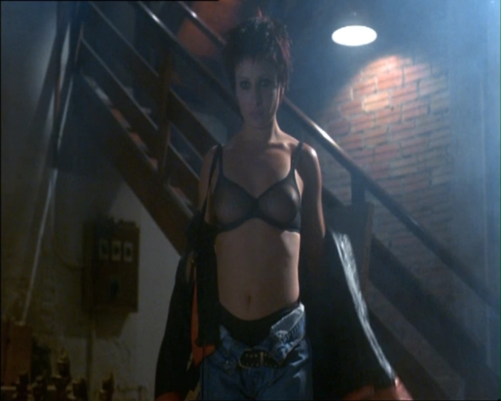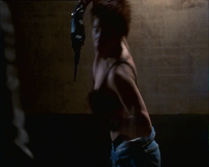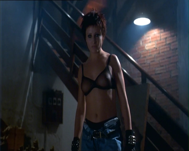 Cute zako from Faust - Love for the Damned. She is part of the gang that murdered our "hero's" girlfriend, and has the best sort of outfit... practically translucent bra that shows off her nipples, and a leather jacket. :)