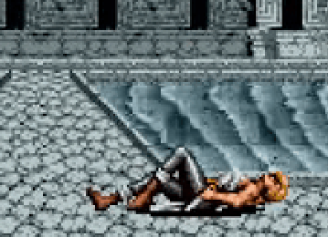 - The only one that comes to my mind is Tesya from the SNES Battle Blaze where she loses and tries to get back up and falls.