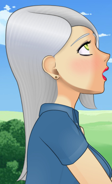 I couldn't find a very good side reference shot, but I think her hair goes slightly longer down the back: