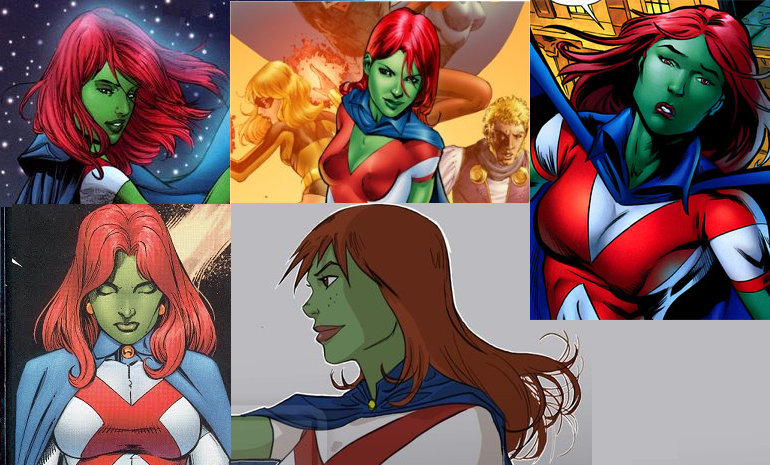 Miss Martian from DC Comics Teen Titans fame. Should be simple enough I would think. Medium length Scarlet Red hair and Freckles on the cheek, couple that with the right shade of green for the skin tone and we're in business :)