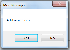 When it asks you if you want to Add a new mod, you click Yes.