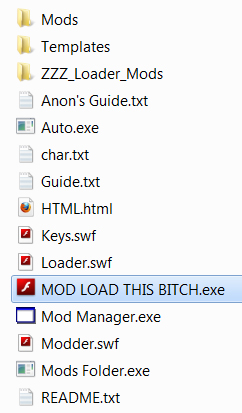 Step 5) Open up the Mod loader. You have a few choices when doing this. You can open the Loader.swf, Loader.exe, or the HTML.html, I personally would prefer the loader.exe, you don't have to deal with a browser or a player.