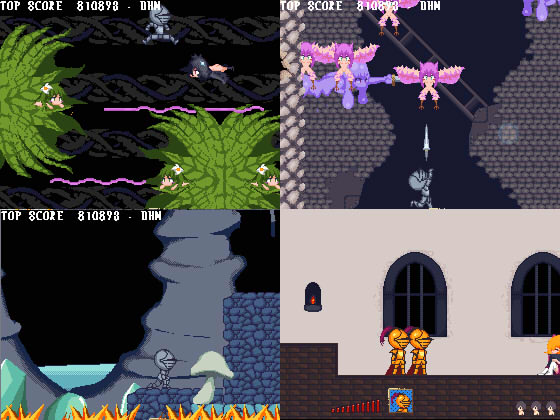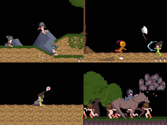 DHM combines Ghosts and Goblins formula with game over rape in this platformer which is currently only available on Japanese DLSite. DHM is a fan of Kyrieru, which is why the game over rape looks very similar to Eroico. True to the Ghosts and Goblins formula, you can take two hits before you die. However, you don't turn into a pile of bones. You simply lie prone, and whatever enemy approaches him will have her way with him. The demo contains three enemies and a boss, and it will run on Western computers without problem.