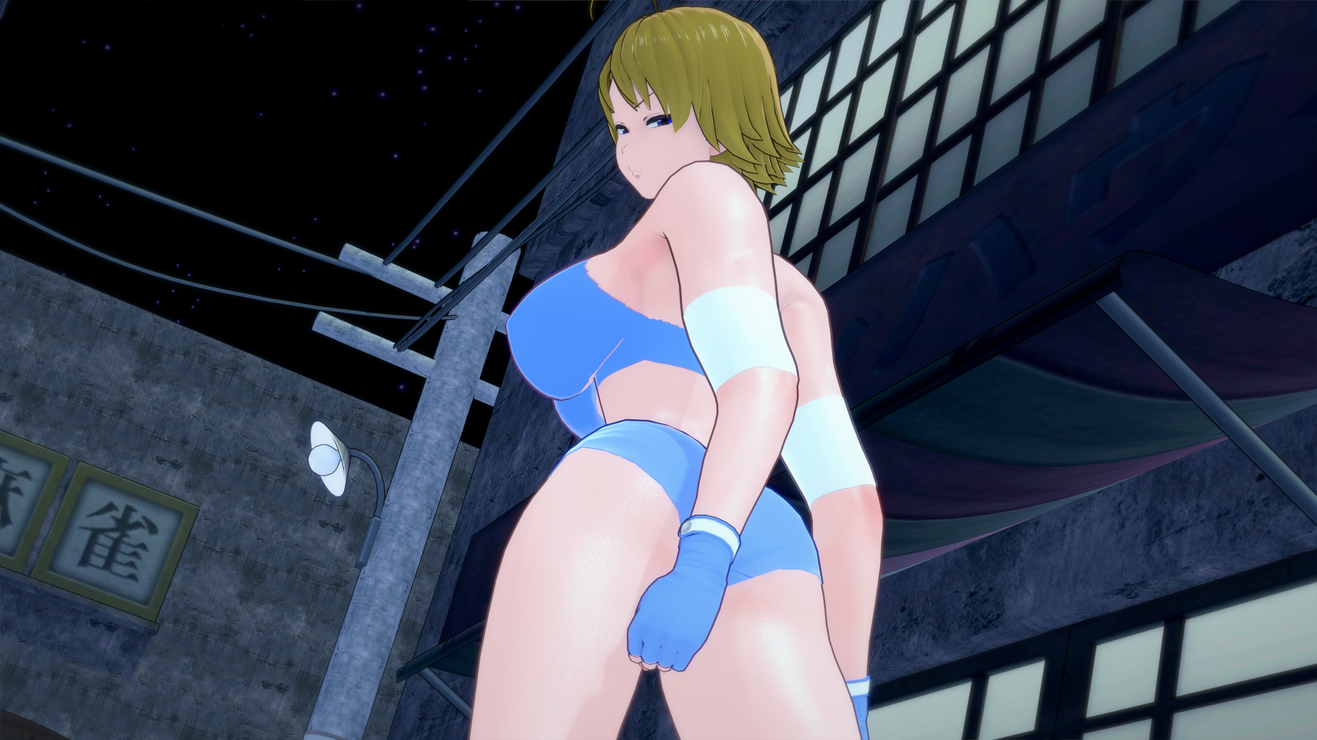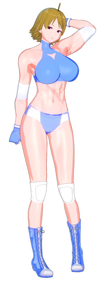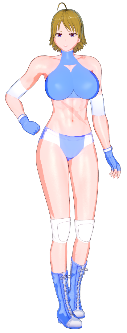 A haughty yet tough tomboyish British wrestler/brawler with a soft side for her fellow fighter zakos (i.e judokas, TKD fighters, karatekas, capoeiristas and even Muay Thai boxers), being that they refer her as their senpai/senior. Don't let her pastel-colored outfit deceive you! She's a heel, and she'll do anything to stay alive and take the player down! She'll even use environmental takedowns using surrounding objects like smashing the player with metal chairs and pipes or hurl a fallen comrade of hers at the player, and she wont' go down easily. Blair is exceptionally durable, and might take some time to bring this blonde bruiser down.