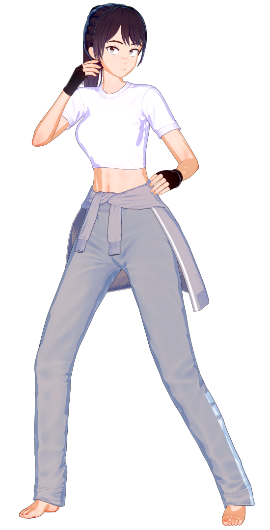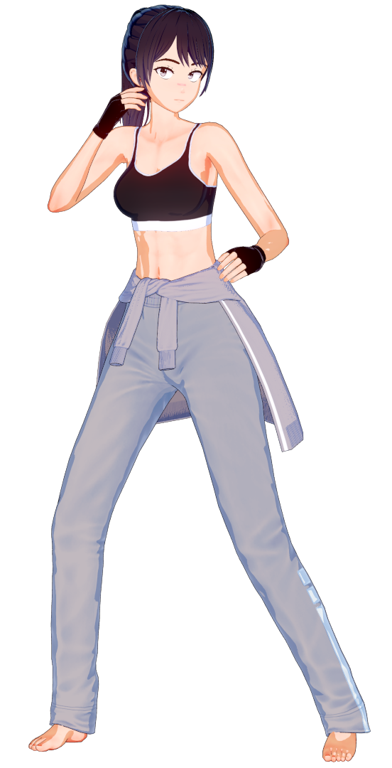 Gameplay: Aggressive female fighters, adept at close-quarters combat with powerful elbow strikes, knee strikes, and grappling techniques. They can perform devastating chain moves: grapple her and knee her in her stomach before finishing her off with a roundhouse kick.