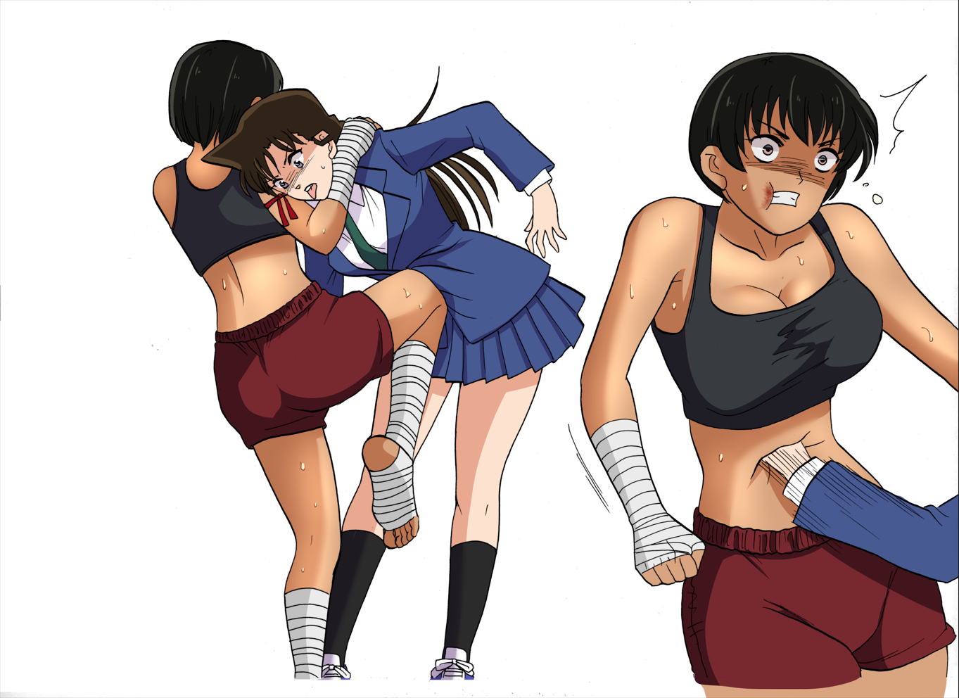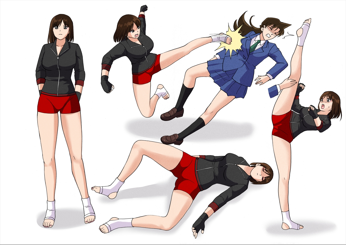 I try to make them look a bit more modern in contrast of the more "traditional" looking judokas and karatekas, and the more "rural" looking Muay Thai kickboxers