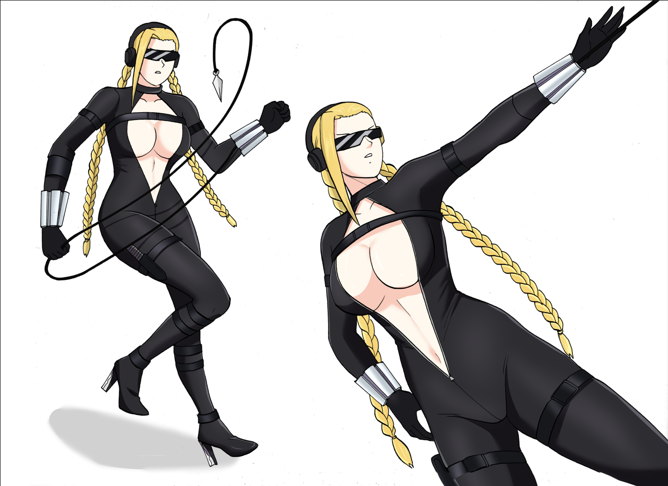 Title: "Stereotypical image of a sexy yet traditional female ninja dressed in fishnet stockings."