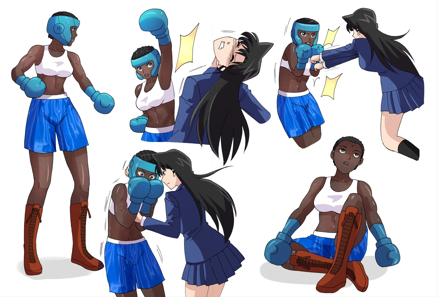 For female boxers, my idea for differentiation is: using African appearance (hope no SJW coming for this) and boxing only as fighting style, no kicking or grappling.