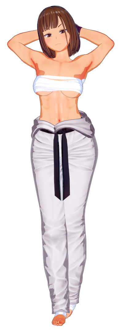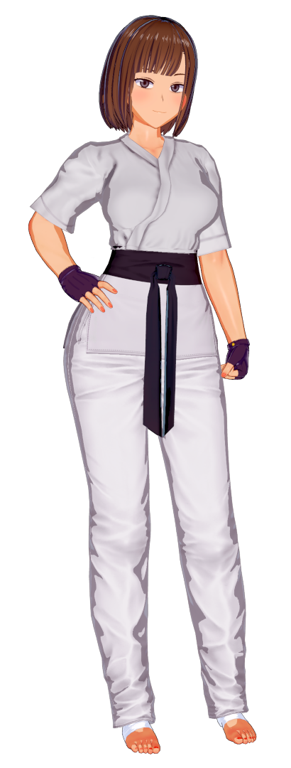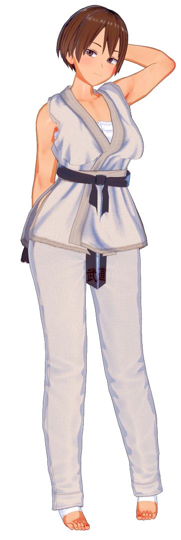 For Karatekas, that's the sleeveless gi I'm talking about BTW. It'll look like that girl, but with a brown hair and white gi.