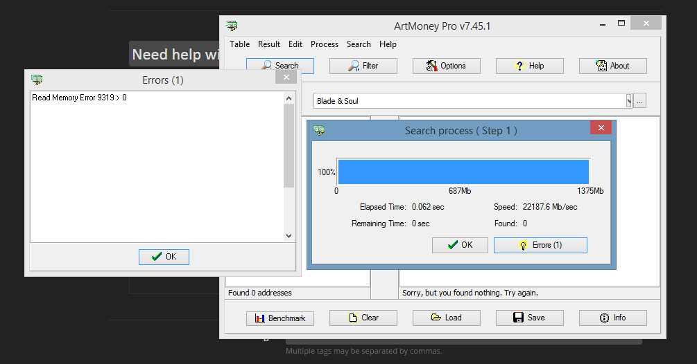 But artmoney dont read a memory and gives an error. What am I doing wrong?(