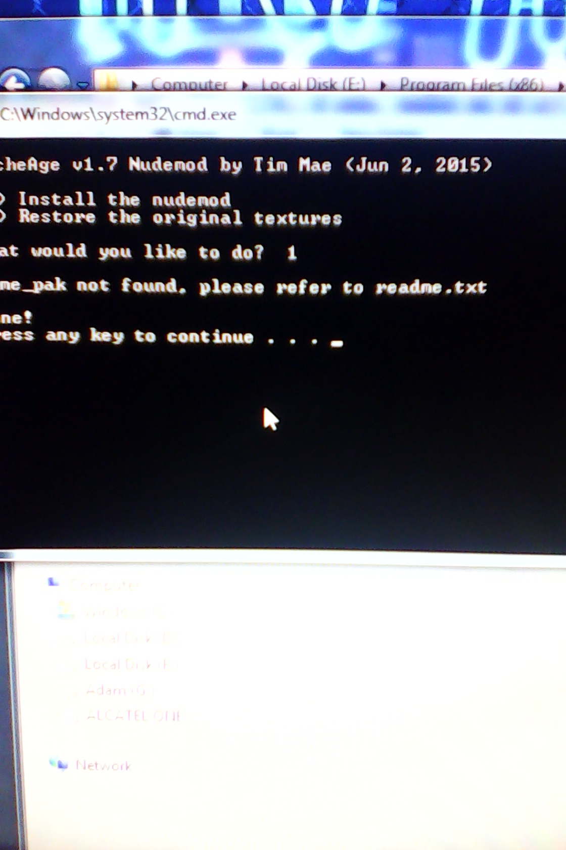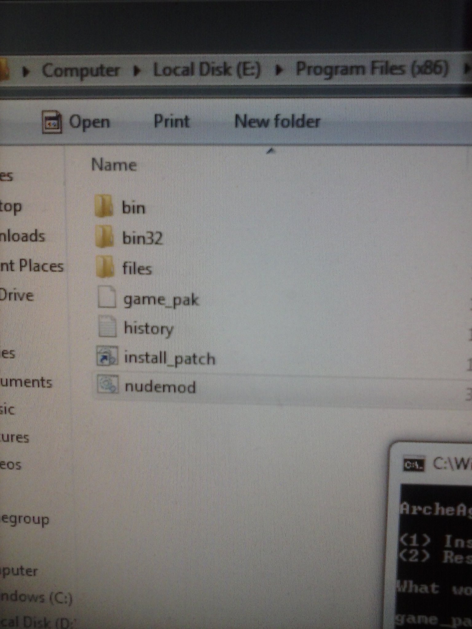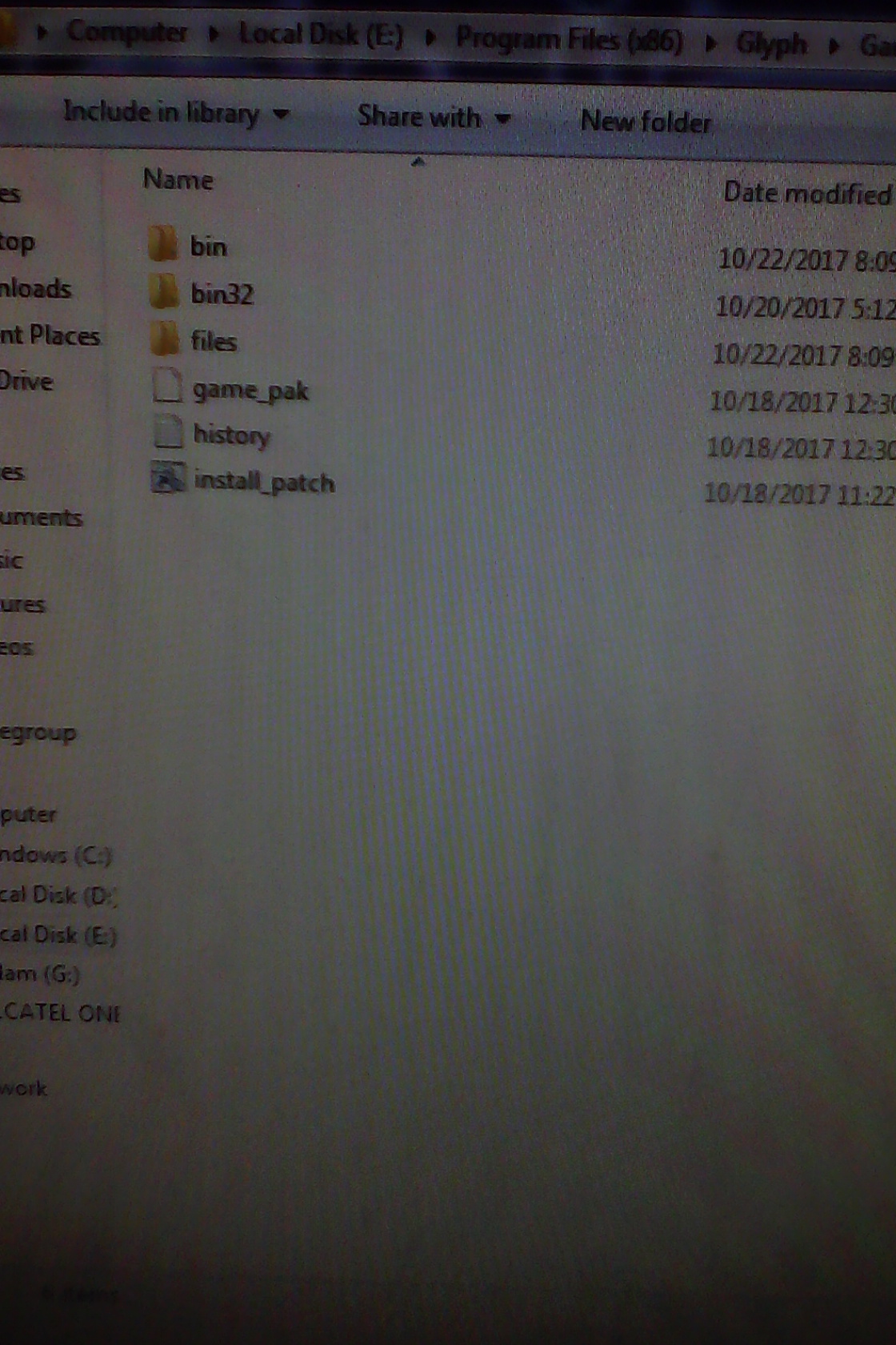 I put the files [file], bin [file] & nudemod [bat] in My Glyph Folder [ This PC > Local Disc (C:) > Program Files (x86) > Glyph ]