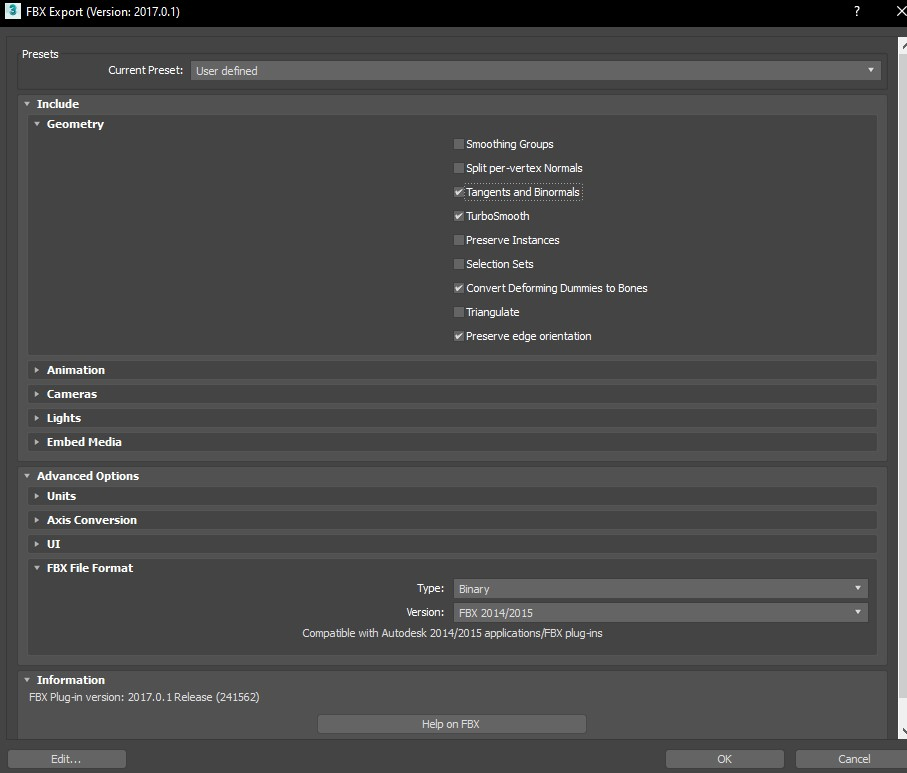 Edit: Try to match these settings in FBX export (these are probably not the best settings, but they're at least known to not break normals after exporting, unsure if that's because of the settings or something else) View attachment 140424