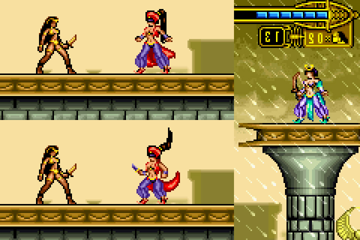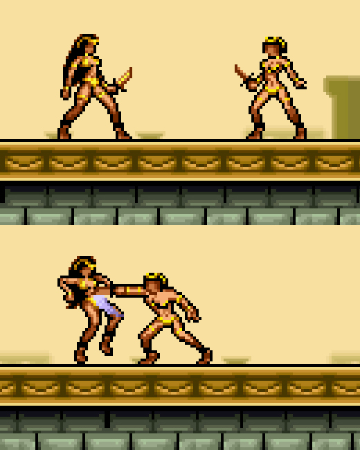 I once edited a Persian knife wielding zako from GameBoy Advance's Scorpion King: Sword of Osiris. The sprite works are surely hard as I expected....