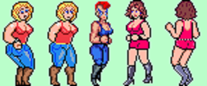 I think I could make one like that, especially since I will already have one character in a short skirt (the pink playable character) to use as a template. What were you thinking in terms of size? I remember the zako from Target Renegade being as big or bigger than the player, but then again I've already got one female zako in the game (the biker) who probably weighs almost as much as some male characters. If the skirt zako were the same size as the pink skirt character, I would just need to change colors, faces, and details. But I could make other sizes work too.