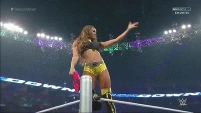 Cameron charged at Paige and tore into her gut with a running shoulder tackle. Paige's body folded between the turnbuckles as a deep gasp escaped her lips. Her hair drooped down over her exhausted face, but Cameron brushed it aside so everyone could see the defeat in her eyes.