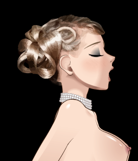 This was a bit of an experiment. I found a good photograph of an elaborate hairstyle in profile view. Then I vectorized it with Vector Magic. Then I moved some parts to dynamic layers and tried to fill in the holes created by that (which is difficult and took a lot of work). I thought it looked like it could be a bridal hairstyle so I gave her white clothing.