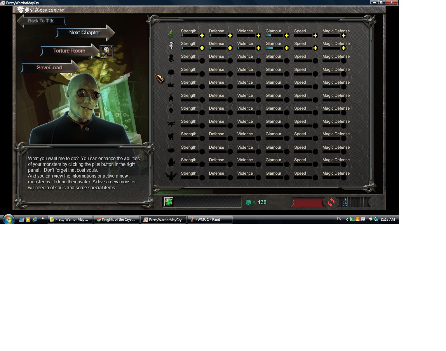 5. when you go to the Torture room, put 2 succubus far away from from the captured enemy, they'll just walk around but as they walk around they somehow gain exp, in which case they level up without really doing anything, and as they level up you gain souls. To make this constatly work, just do this. Go to the toture room (must be your first time when you open up the game) place two succubus in the dungeon (one in the top right room and the other in the top left room) they'll walk around gaining you souls. When they reach the enemy soldier, leave the dungeon, save, then exit out the game. Re-open the game, load your data, go to the torture room and do the same thing. Now just kick back and watch as your souls increase. You can do this a number times, just be sure to save your data, exit out of the program, then re-open it k. If you save then load it, without exiting out, it won't work. Be sure to have at least 90 souls left over, when you summon a succubus into the torture room it costs 40 souls, so be sure not to spend it all.
