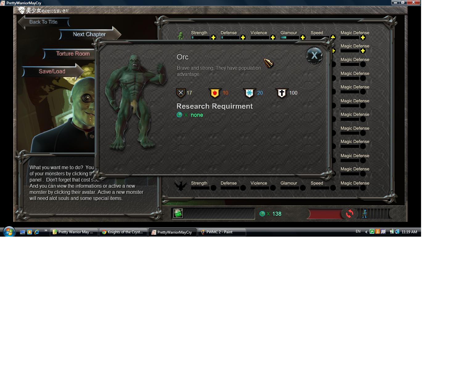 Found this game while surfing the net, it's pretty interesting. Basically, you're like an evil wizard who's goal is to take down a kingdom cause the King has ordered his knights to kill all of your demons. Basically you dig up tunnels and hide the wizard from the knights, and you place your demons throughout the dungeon who try to stop the knights. If the wizard dies it's or course game over. The way to stop the knights, there's 2 different ways. The first is to have your male monsters kill them, the other way is to have your female monsters seduce him and capture him, in which case when you capture him you can go to the torture chamber and let your female demons have their way with them. There are both male and female enemies. Male demons hurt male enemies, but rape female enemies. Female demons hurt female enemies, but rape male enemies. This game does require some strategic play, so be sure to think with the head that's on your shoulders and not with the one that's between your legs lol (sorry couldn't resist) Also you can upgrade your demons as well as buy new ones, but to do that you need a certain amount of souls.