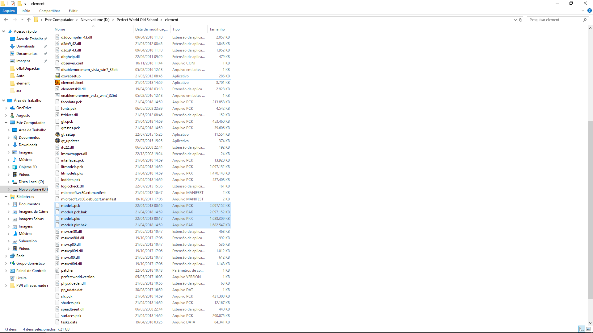 Can anyone help me with this, I've downloaded both Spacker and Models, extracted them into a new folder under PWI\element. I don't see a models.pck or a models.pkx. only a pkx bat folder. Which 2 files do i need to put inside their own folder so the merge.bat will combine them? or am i understanding this wrong?