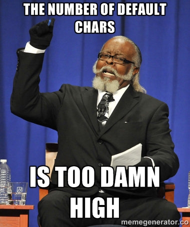 Thanks for your replies. I always thought I was merely too silly to find the very obvious button to remove default chars. ;D