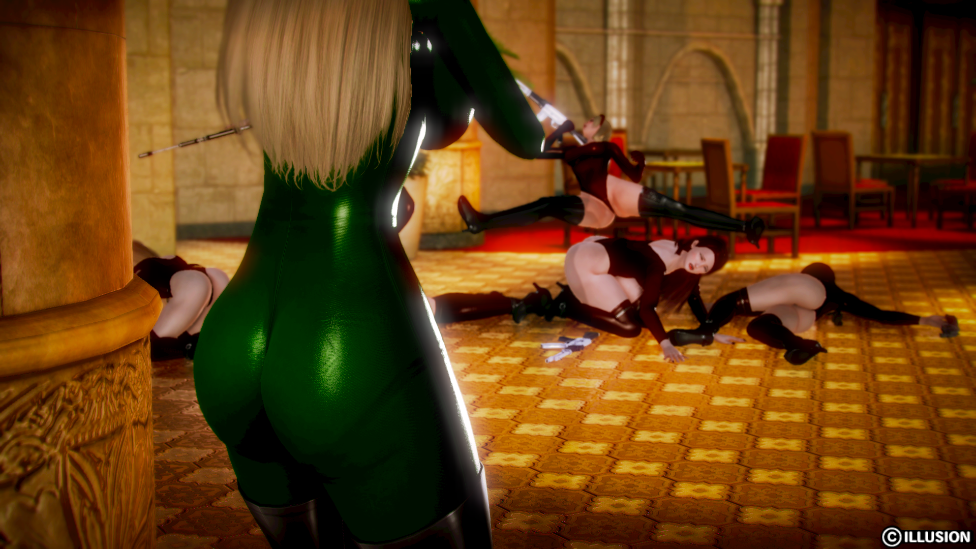 Looking at the girls she was suddenly swept up in a wave of arrousal. Her face felt flush and her eyes drooped just a bit looking at the destruction she wrought. One of the maroon girls tried to crawl on all fours to aid another, too in shock to realize how wounded she was or think or where the attack came from. Another was on all fours looking at the green zako in tears and horrified of her and what was happening. Then her head and shoulders slumped down leaving only her ass up in the air. It was the Zako from before who's ass the green zako had been admiring, ironically enough.