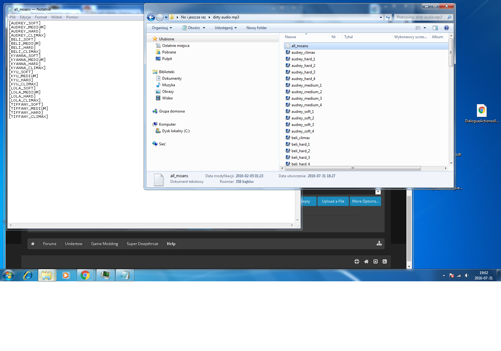 There are some mp3's like "audrey_climax" or "audrey_hard_1". There is a notepad too, that has commands to trigger the mp3 - that is named "all_moans" Where can i put this folder, to make it work with dialogue actions?