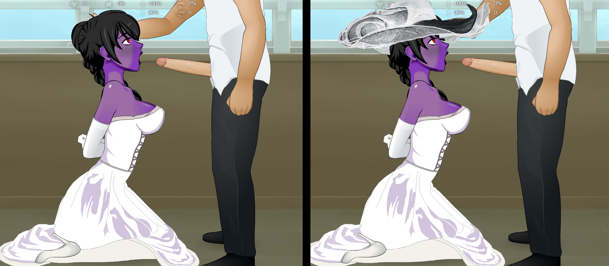 It's also important to note that hats are almost always drawn on the HAIR layers, and semen strands do not collide with hair. Hence, a semen strand can pass straight through the hat brim and hit the girl in the eye - or fall "into" the hat and apparently disappear (because it lands on the top of her head). This bug-scenario is somewhat noticeable in vanilla SDT, but it becomes almost unavoidable when you bring a giant hat into play.
