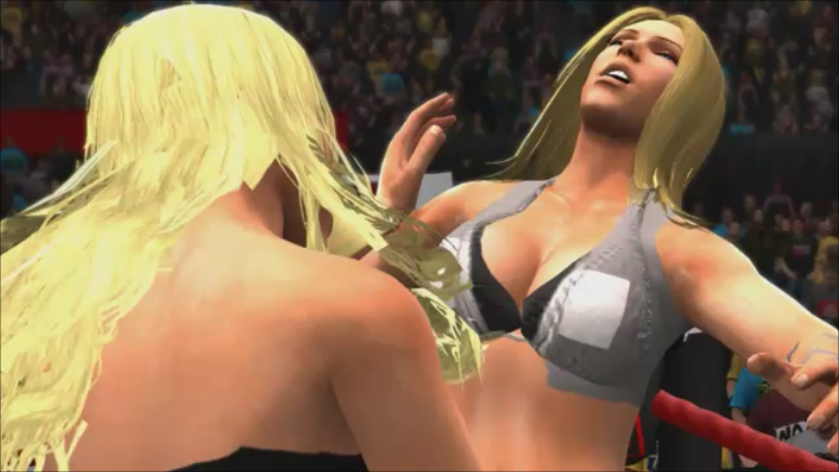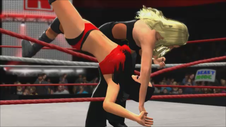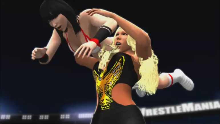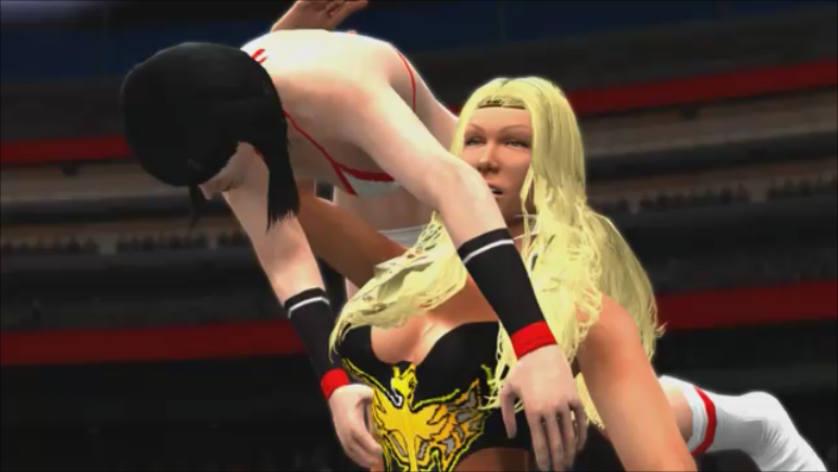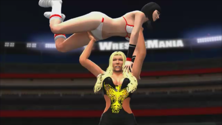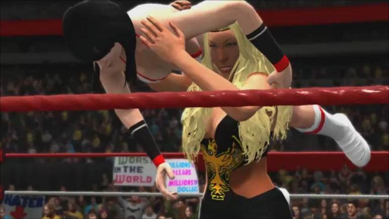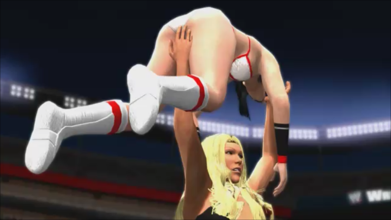 The Glamazon then lifted the helpless girl high up in the air for her finishing move.